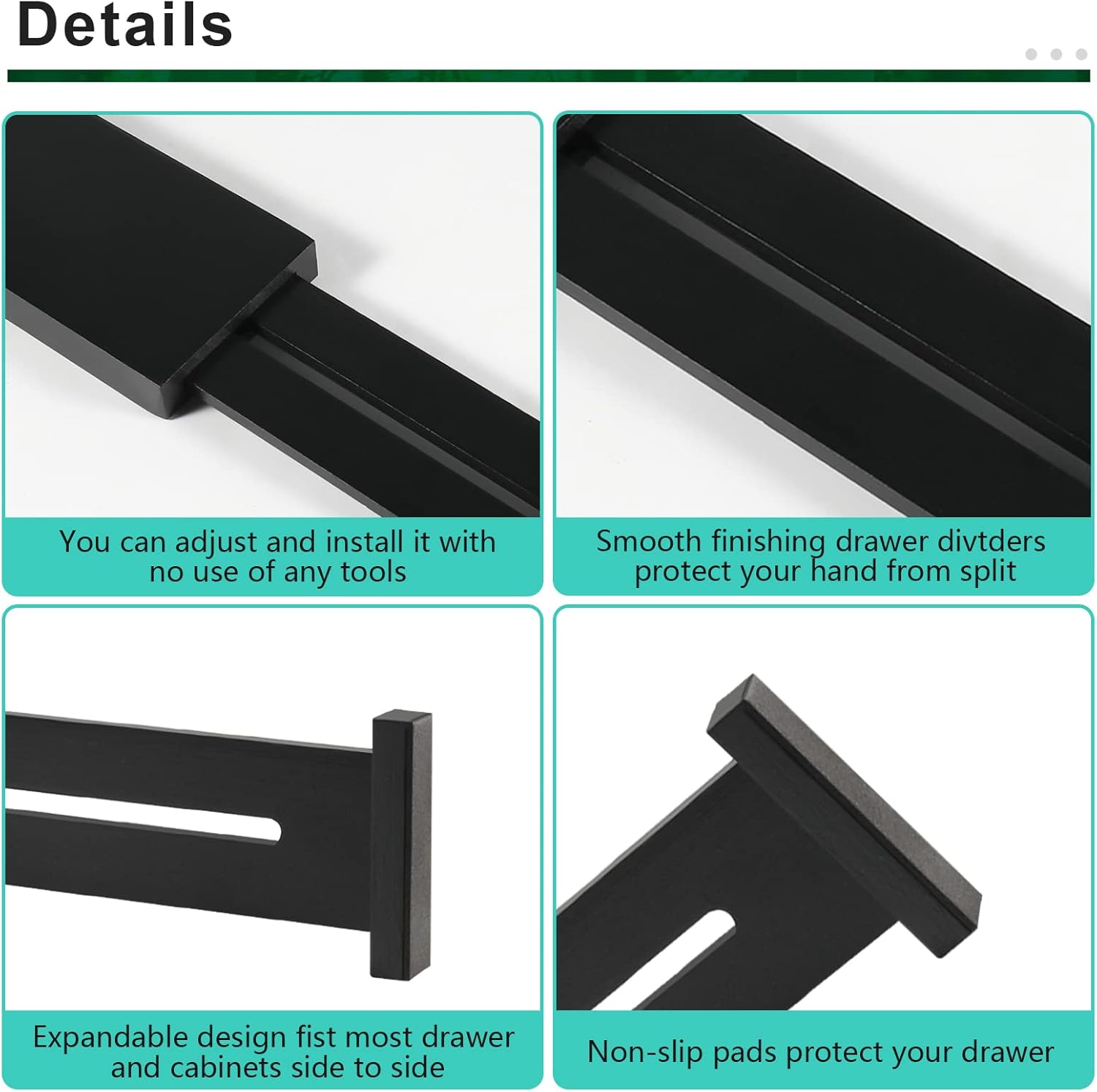 - Quality Material: Expandable drawer dividers are made of high quality natural bamboo, which is environmentally friendly, strong and durable, and the bamboo is polished flat and smooth