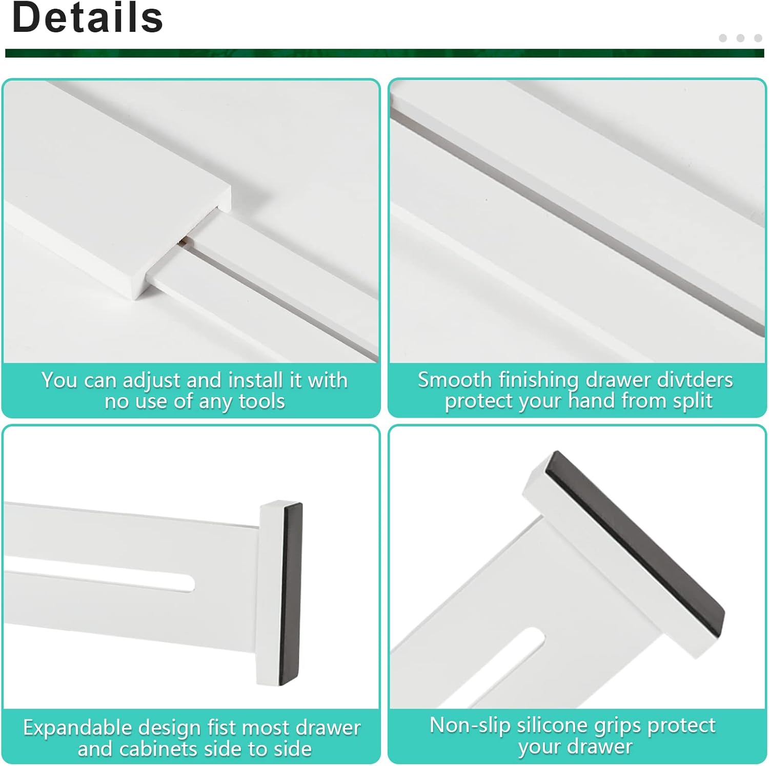 - Quick Installation: Kitchen drawer divider have built-in springs for safe and stable placement; easily adjustable length to meet your specific needs; foam pads on both ends protect your drawers from damage without leaving any marks or residues