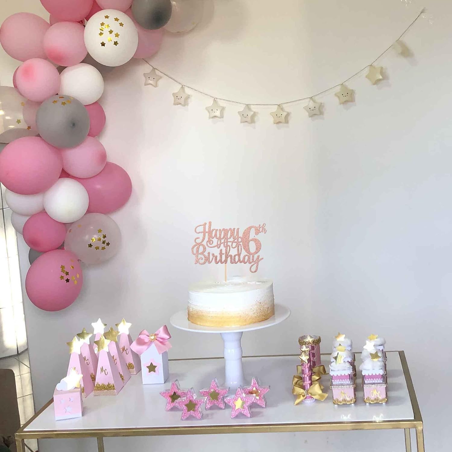 1 PCS Happy 6th Birthday Cake Topper - Glitter Cheers to 6 Years - Fabulous Cake Decoration for 6th Birthday Theme Party - Rose Gold