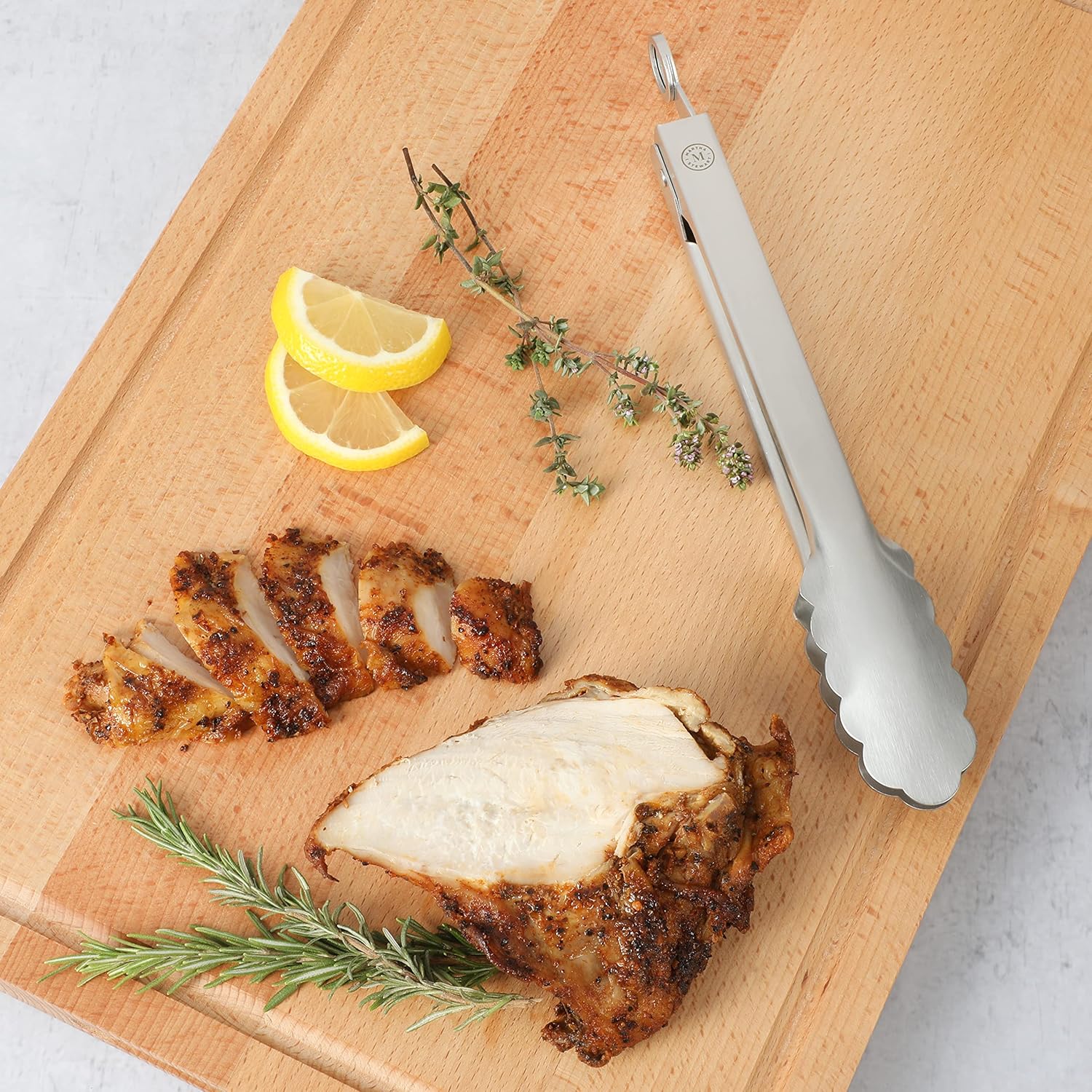 - WHAT'S IN THE BOX: One pair of stainless steel tongs (9-inch)