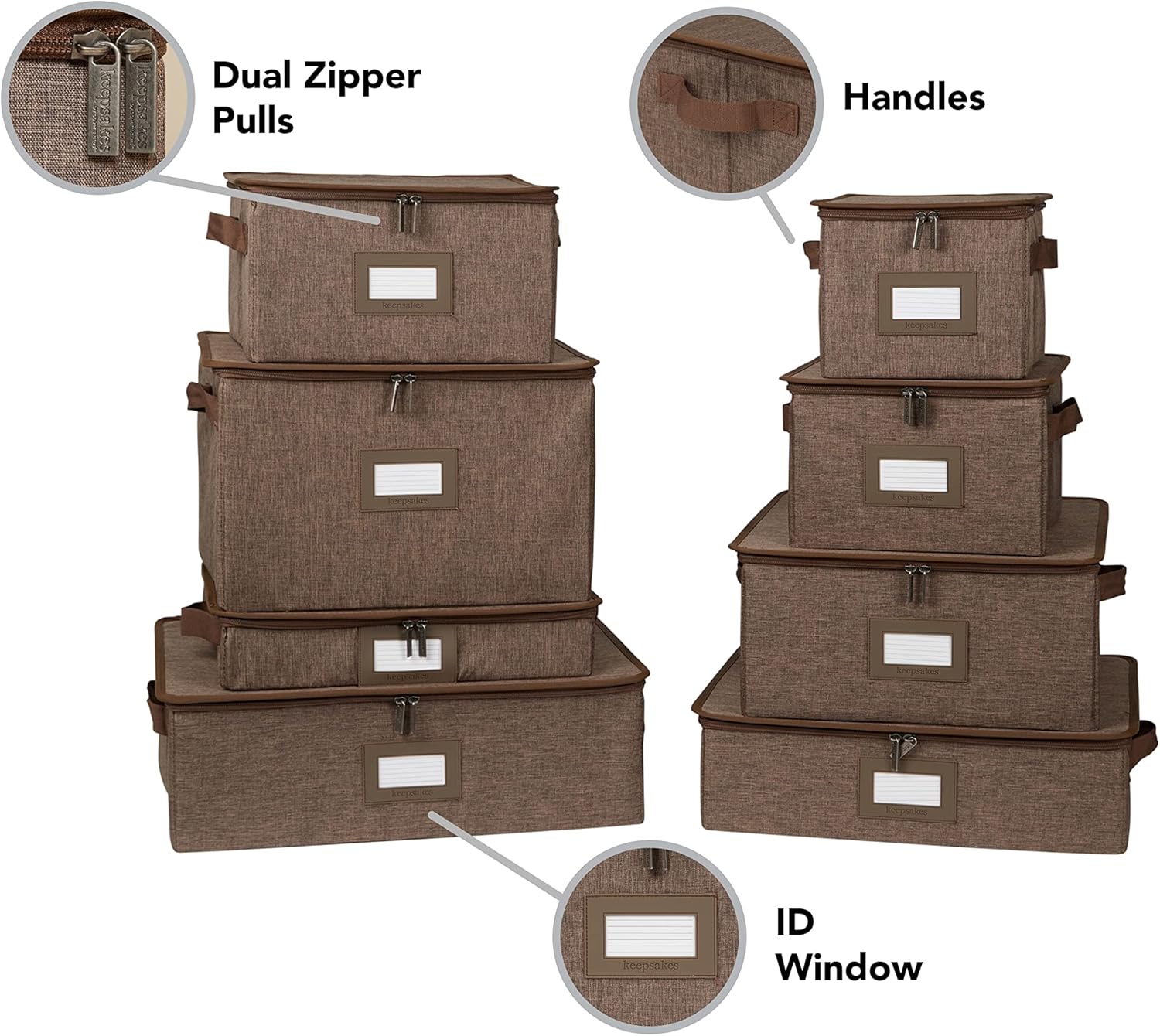 Covermates Keepsakes Dish Storage Box - Stackable, Reinforced Handles, China Storage, Brown Heather