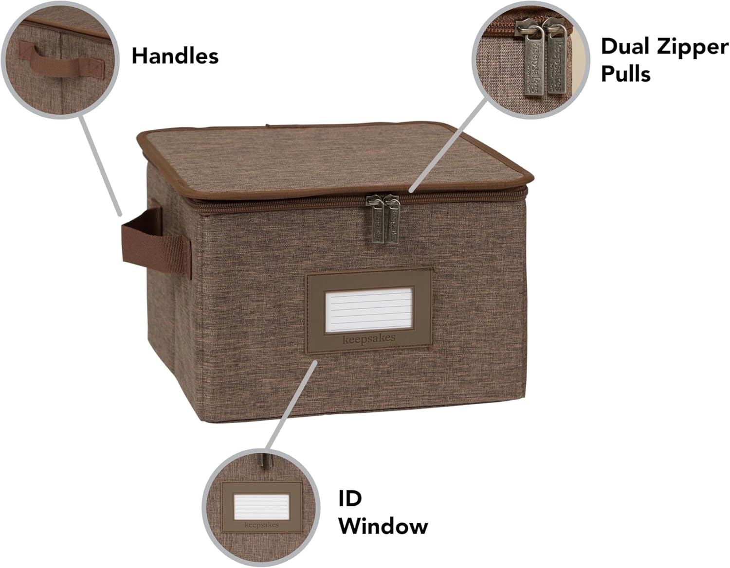 Covermates Keepsakes Dish Storage Box - Stackable, Reinforced Handles, China Storage, Brown Heather