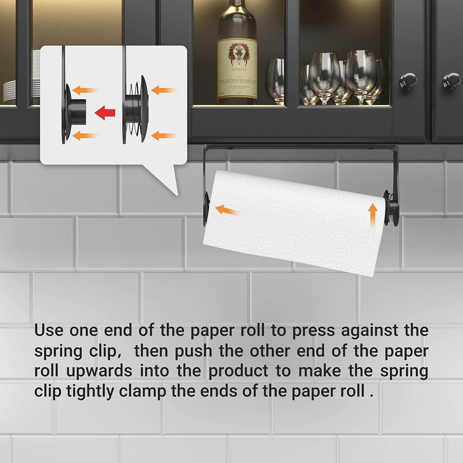 - ADVANCED RING SPRING STRUCTURE: Under counter apartment essentials paper towel holder with unique ring spring structure, it keep paper roll firmly with enough pressure than the one without spring, wonβt slide around.Easy to put or take off the paper roll.