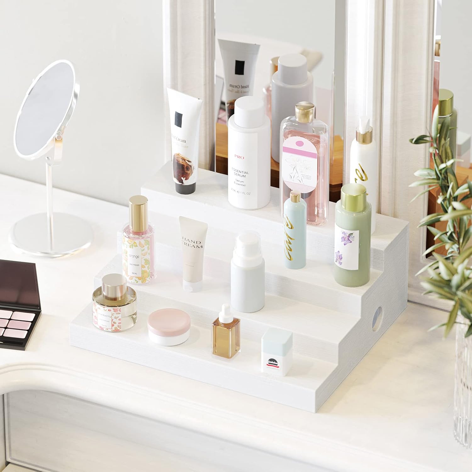 - STURDY CONSTRUCTION - Made of durable solid bamboo instead of plastic; Sturdy enough to hold different sizes spice jars, essential oils liquor bottles, cosmetics like lipstick and even canned goods