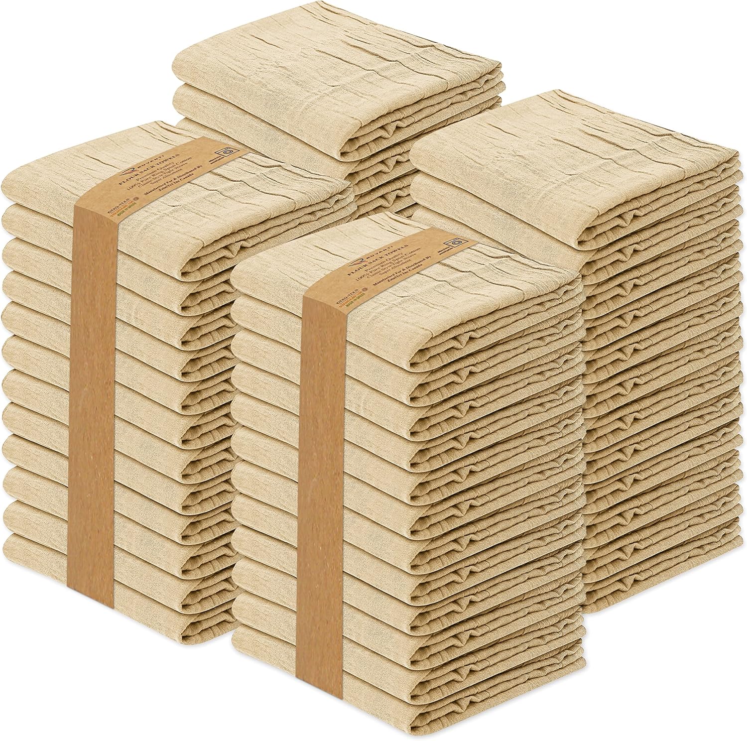 RUVANTI Flour Sack Towels 50 Pack 28x28 Inch, 100% Cotton Tea Towel, Reusable, Machine Washable, Absorbent BarTowels - Dish Cloth Perfect for Drying Dishes & Cleaning -Camel