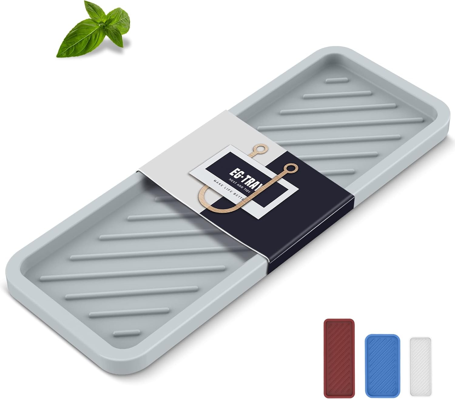 - 【Multiple Uses】Silicone tray is used in kitchen sink, bathroom countertop, living room, windowsill and other places, suitable for placing any suitable size items, such as water cups, soap dispensers, soap, cleaning cloths, small green plants, dishwashing sponges, Stainless Steel Sponges, etc. We have developed 3 sizes, 8 colors to choose from, if you buy the wrong size or don't like the color, please contact us and we will send you the product you need.
