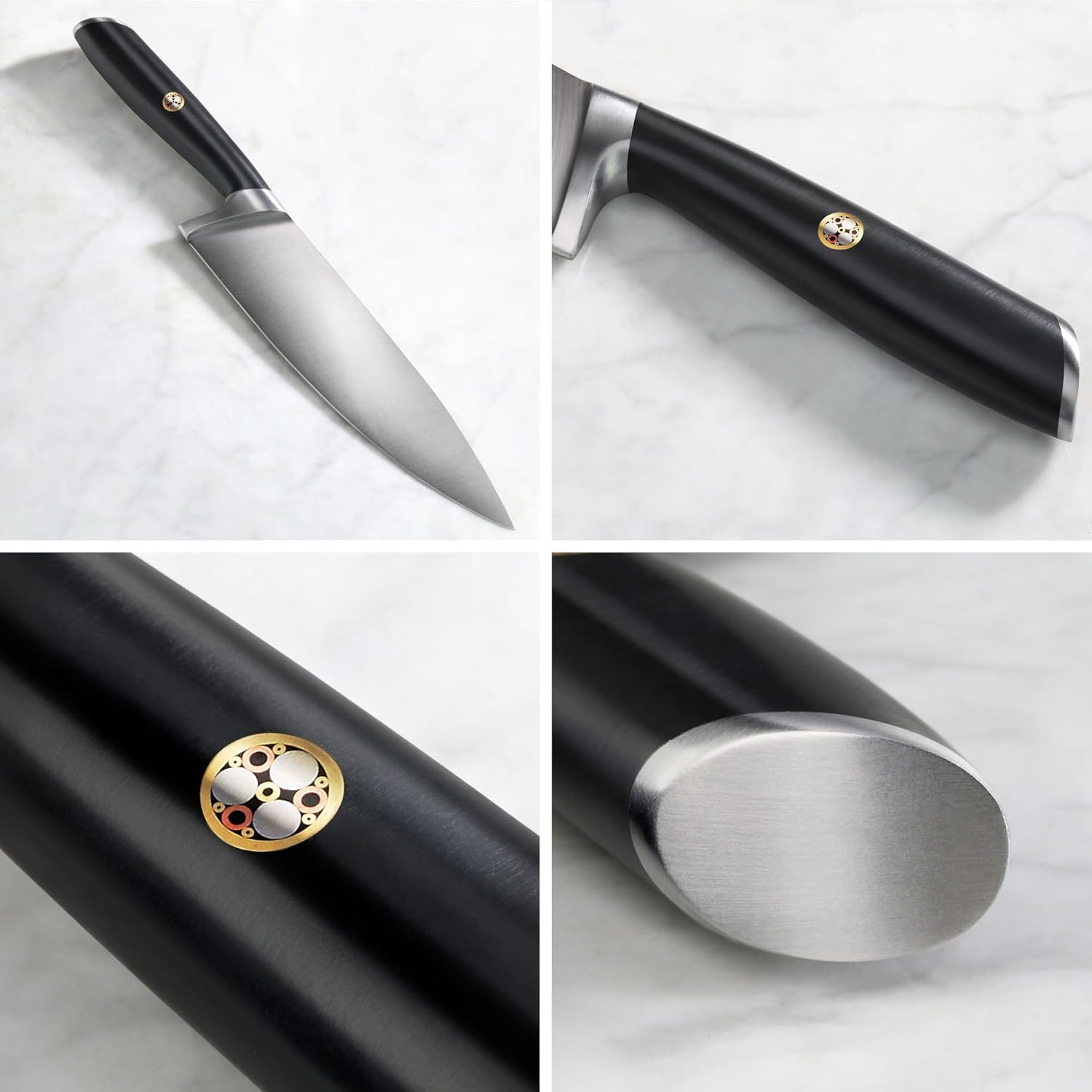 - Patented design knives focus on an ergonomic handle that provides an easy and comfortable grip. The well-balanced and comfortable handle works with the signature single mosaic rivet tastefully.