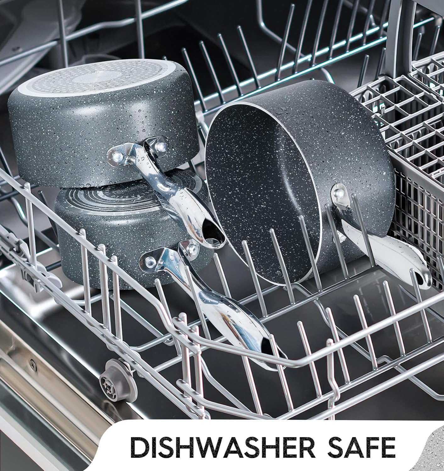 - ULTRA NONSTICK - The granite coating on this sauce pan prevents food from sticking, making it easy to clean and ensuring that your food comes out perfectly cooked every time.