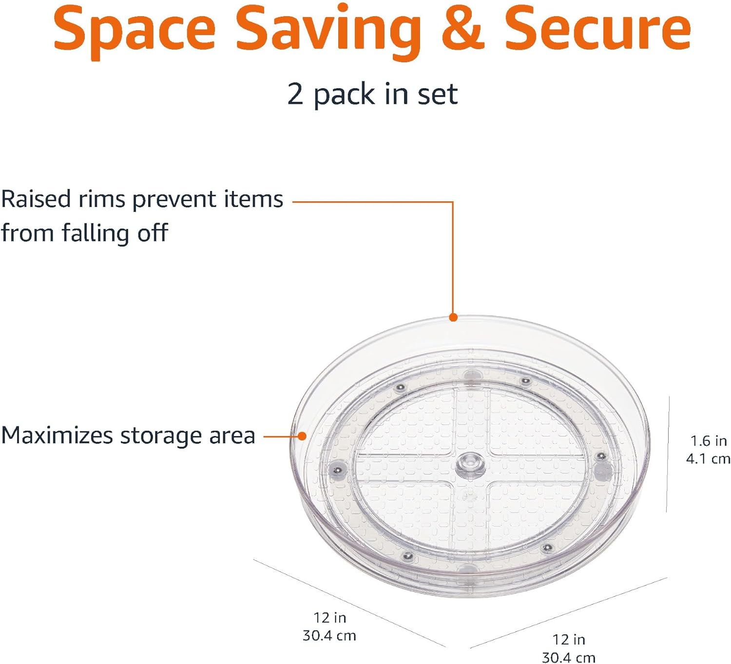 Amazon Basics Clear Lazy Susan Turntable Organizer, 12-Inch, 2-Pack