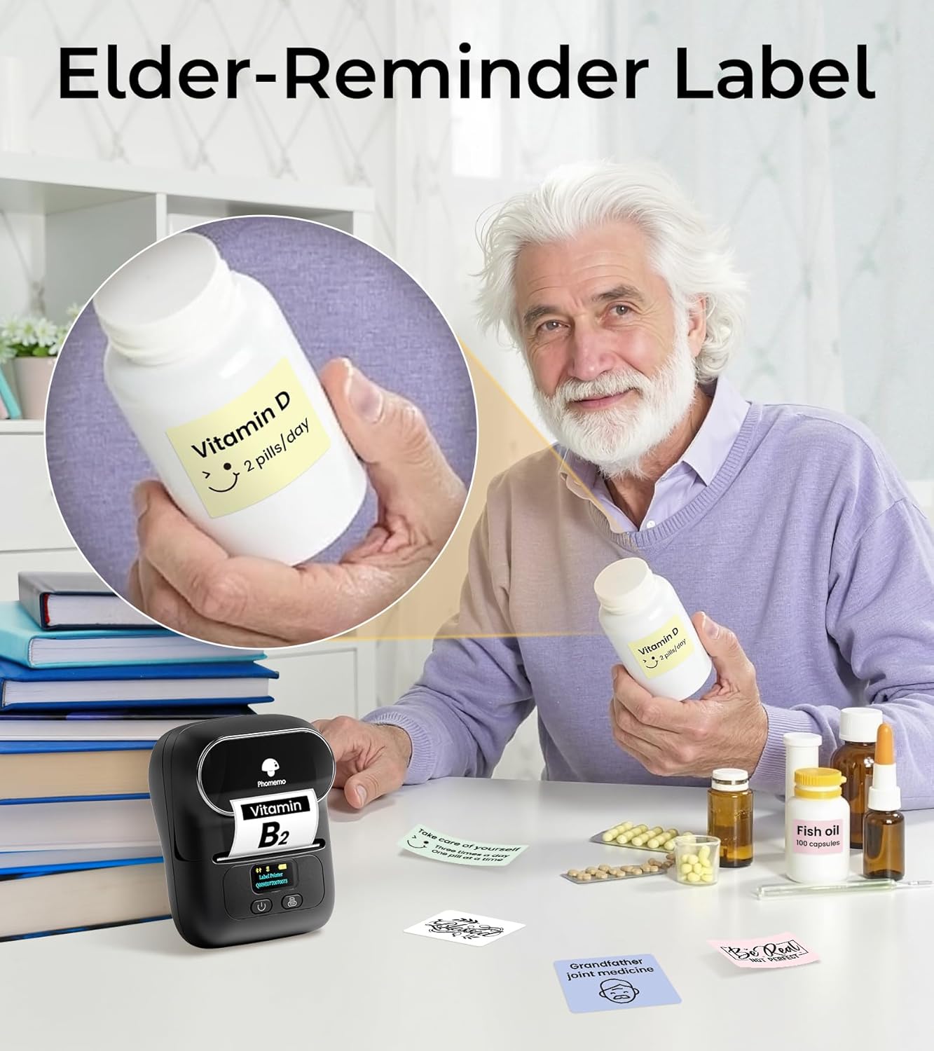 - [Custom labels for diversity]-Phomemo label printer has multiple styles of label tape for choosing, such as coloured labels, clear labels, round rectangular labels, price labels and more. They are highly adhesive, peel off without residue and are also scratch resistant, water and oil repellent.