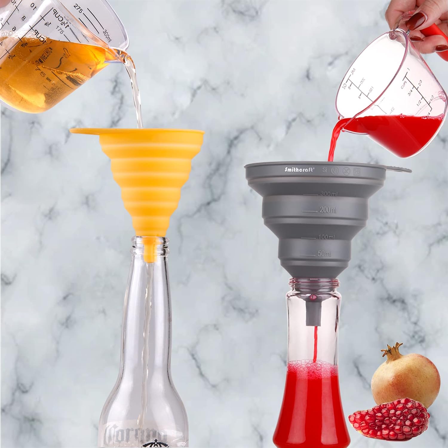 Smithcraft Funnel Set 4, Silicone Funnels for Kitchen, Collapsible Funnels for Water Bottle, Liquid Transfer Folding Camping Funnel with Narrow and Wide Mouth