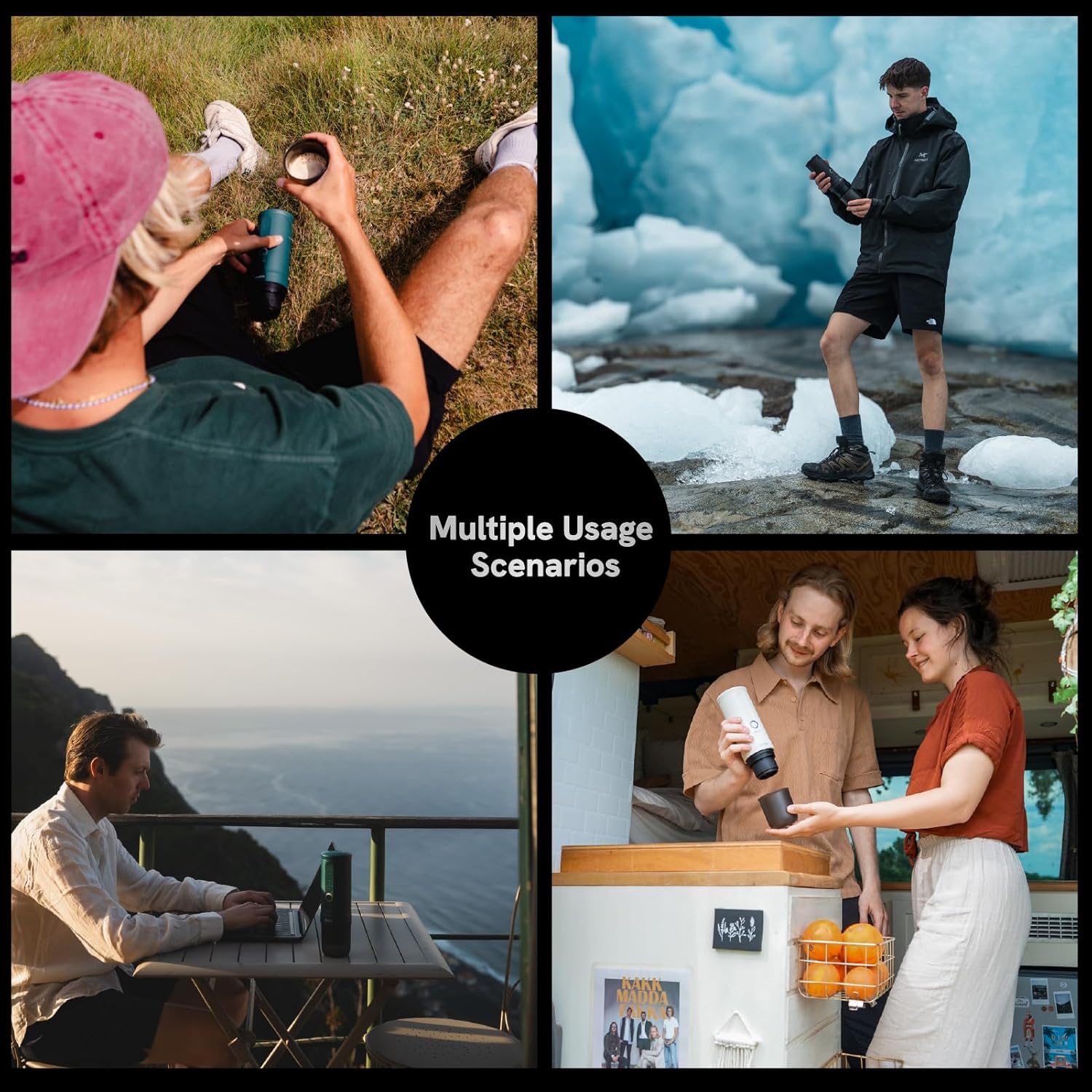 - 【PREMIUM BATTERY CAPACITY 】: Travel espresso maker comes with 7500mAh battery, compatible with 10-15 watts USB-C car chargers for universal charging, which supports up to 5 hot shots with 1.7oz 77°F room temperature water or 200+ shots with hot water.