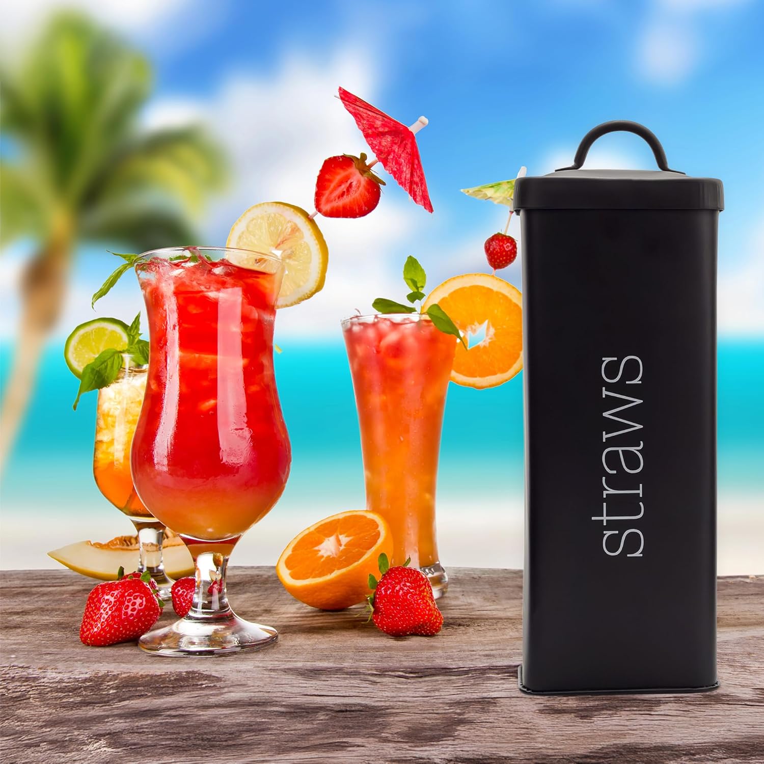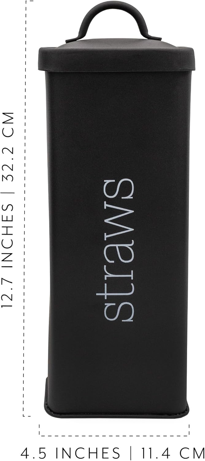 AuldHome Design Farmhouse Enamelware Straw Holder (Black); Retro Metal Straw Storage Canister
