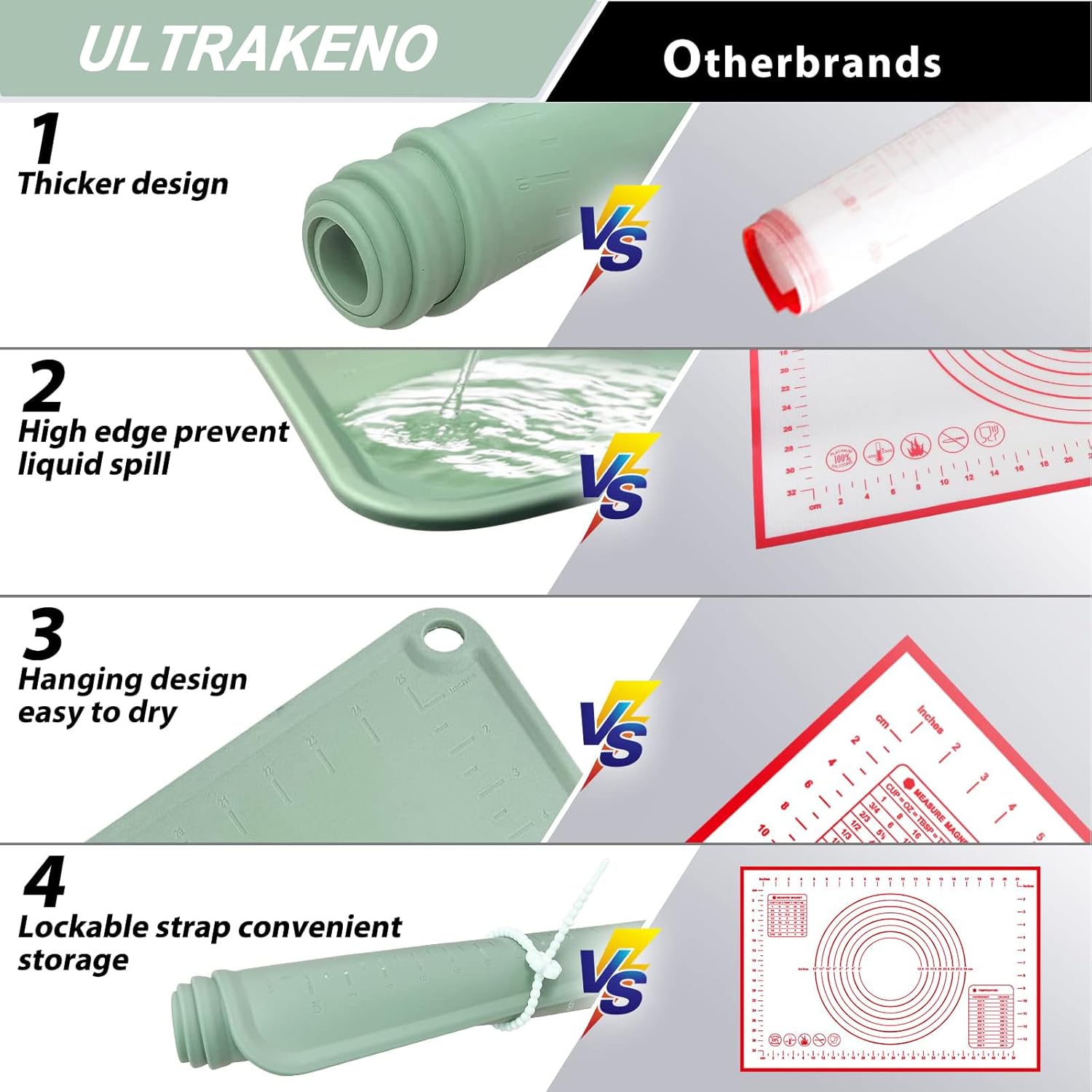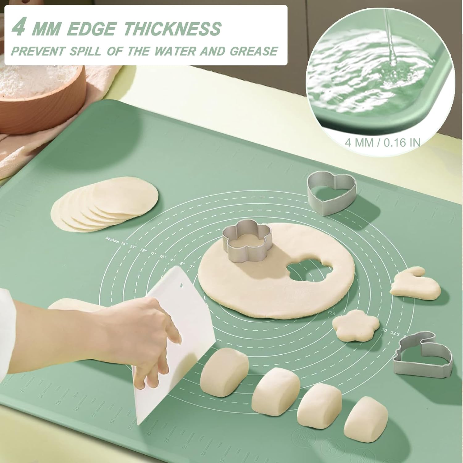 - Non Stick Surface And Non Slip Bottom: Our silicone baking mat features a non-stick design, you can easily knead the dough, and the dough and oil will not stick to the surface. Also the kitchen silicone pad has a strong adhesion and non-slip design, ensuring it stays firmly in place during vigorous kneading