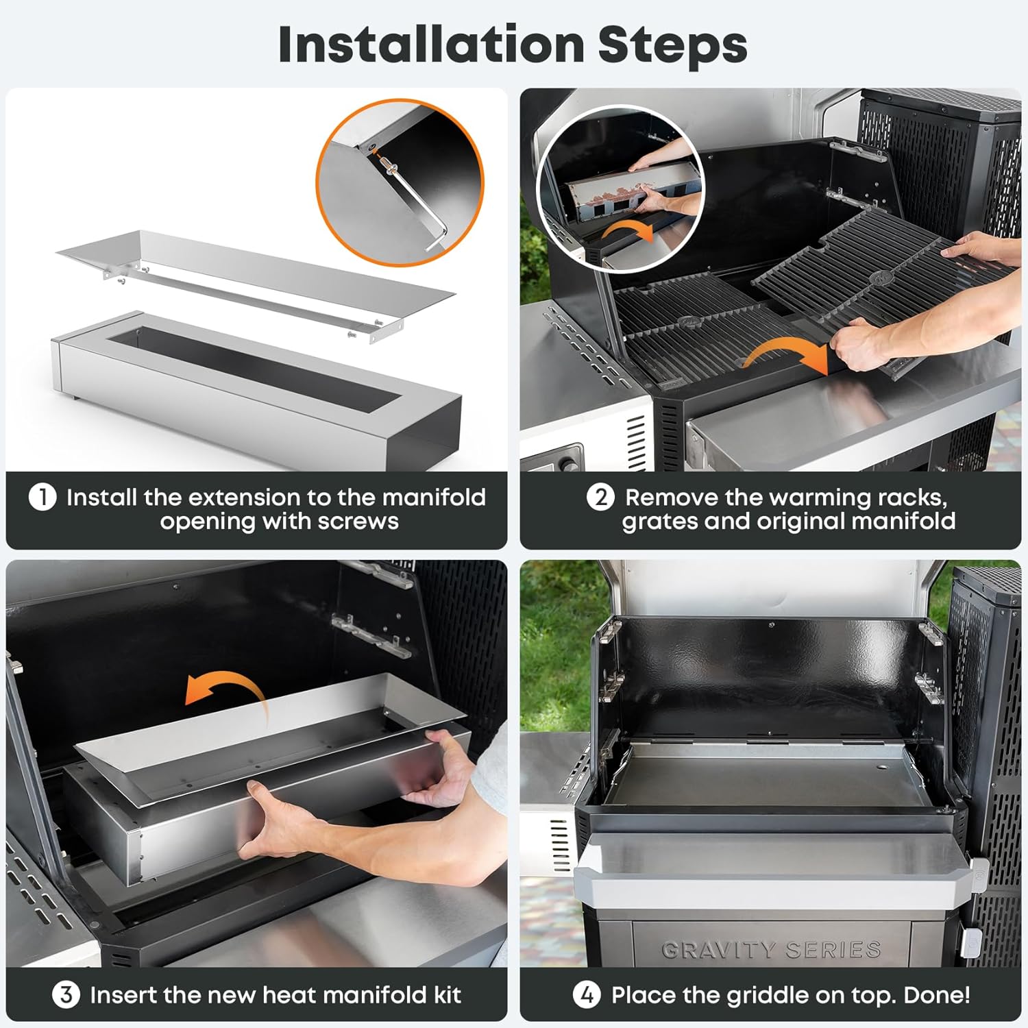 - Comes with special heat manifold kit to direct heat evenly to the griddle top