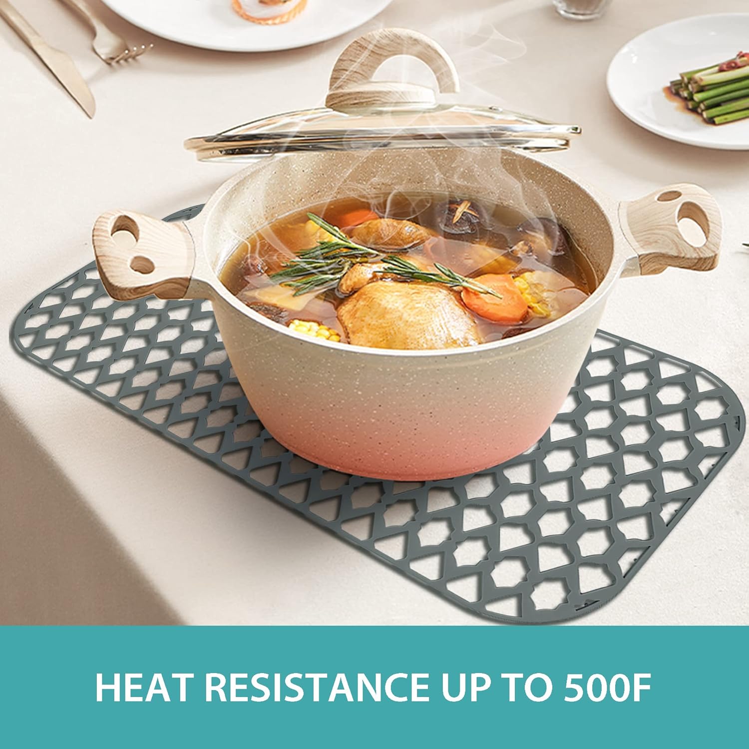 - Heat Resistant & Elastic Silicone Material - Because of the high melting point of silicone material, Our kitchen sink mats can be used to hold high-temperature tableware. Of course, the soft silicone material can form effective protection for bottom of the kitchen sink and table surface, especially when children use tableware, which can prevent many accidents.