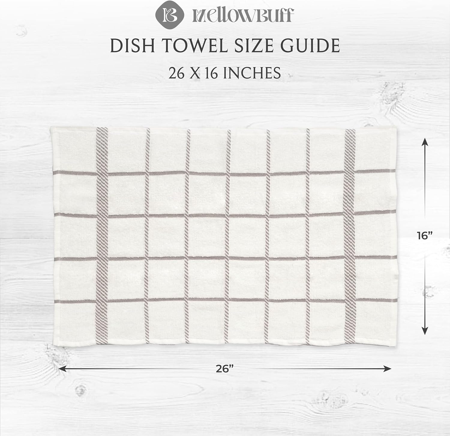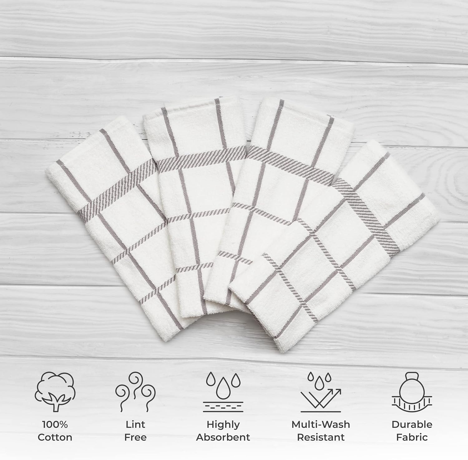 100% Cotton Terry Dish Towels, 4 Pack Checks, 16 x26 Inches, Super Soft and Absorbent Kitchen Towels, Perfect for Kitchen Cleaning and Dish Washing | Light Gray