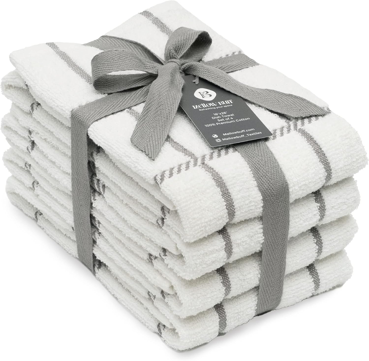 - Mellow buff dishcloths and dishtowels are made of 100% cotton with supreme quality and exquisite workmanship. Designs are simple, perfect size and it will give the feeling of being home by co-ordinating with most kitchen decor.