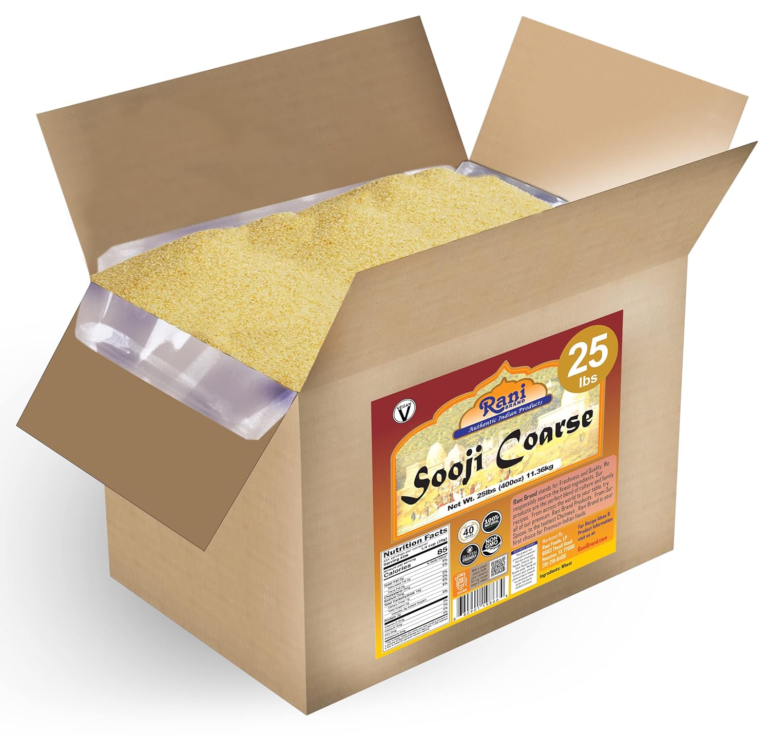 Rani Sooji Coarse (Farina, Suji, Rava, Rawa, Wheat Semolina) Flour 400oz (25lbs) 11.36kg Bulk Box ~ All Natural | Vegan | NON-GMO | Indian Origin