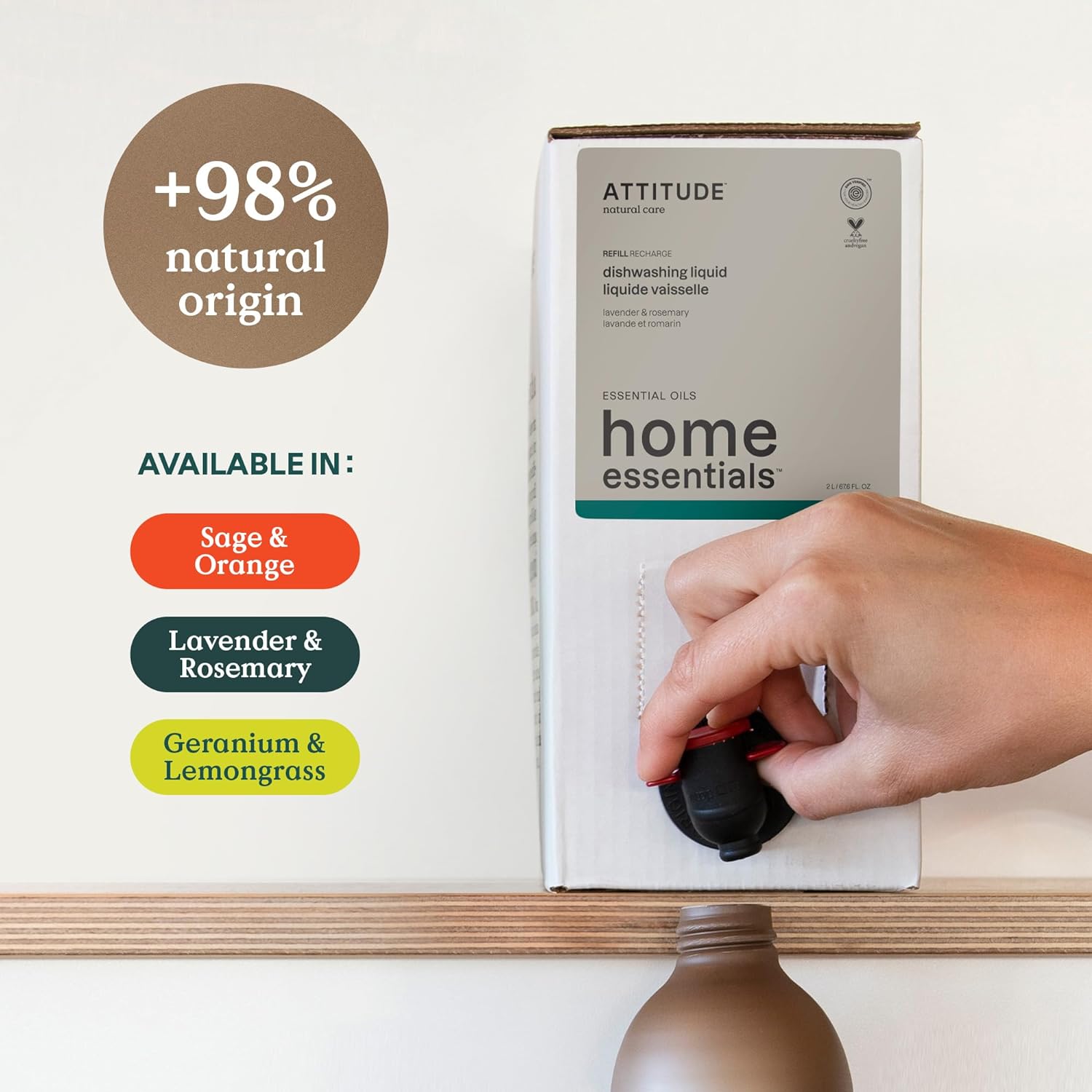 ATTITUDE Dish Soap, EWG Verified, Plant and Mineral-Based Ingredients, Vegan and Cruelty-free Household Products, Geranium and Lemongrass, 67.6 Fl Oz