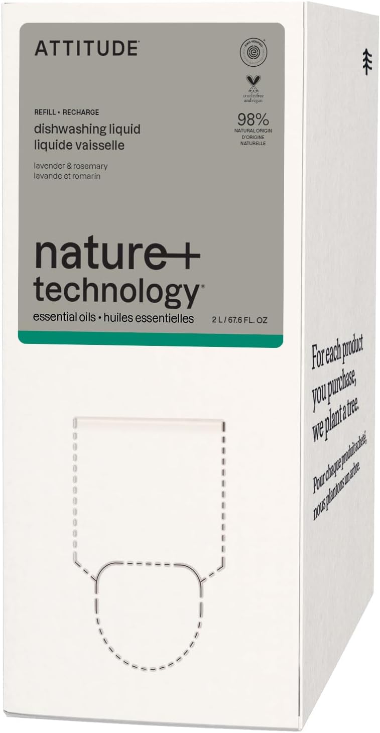 ATTITUDE Dish Soap, EWG Verified, Plant and Mineral-Based Ingredients, Vegan and Cruelty-free Household Products, Lavender and Rosemary, 67.6 Fl Oz