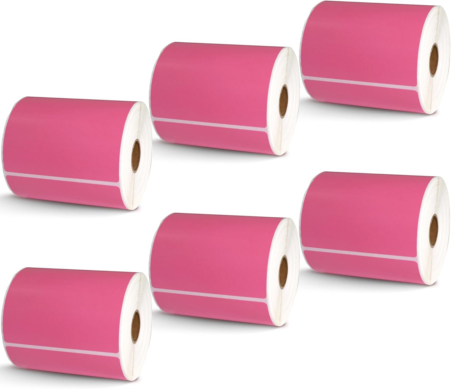 BETCKEY - 4" x 5" Large Shipping & Multipurpose Labels Compatible with Zebra & Rollo Label Printer,Premium Adhesive & Perforated[Pink, 6 Rolls, 2100 Labels]