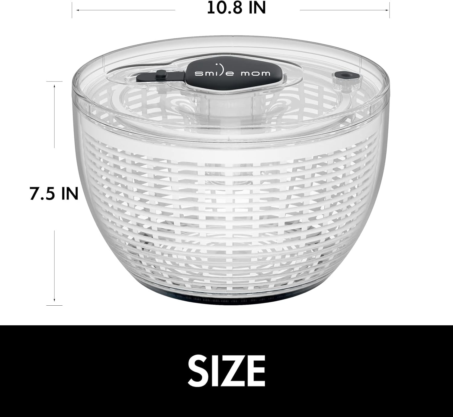 Smile mom Salad Spinner Large Lettuce Spinner Kitchen Gadgets, Large Salad Spinner Vegetable Washer, High Efficiency for Kitchen Washing & Drying Leafy Vegetables, One-Handed Easy Press 6.3 Qt White