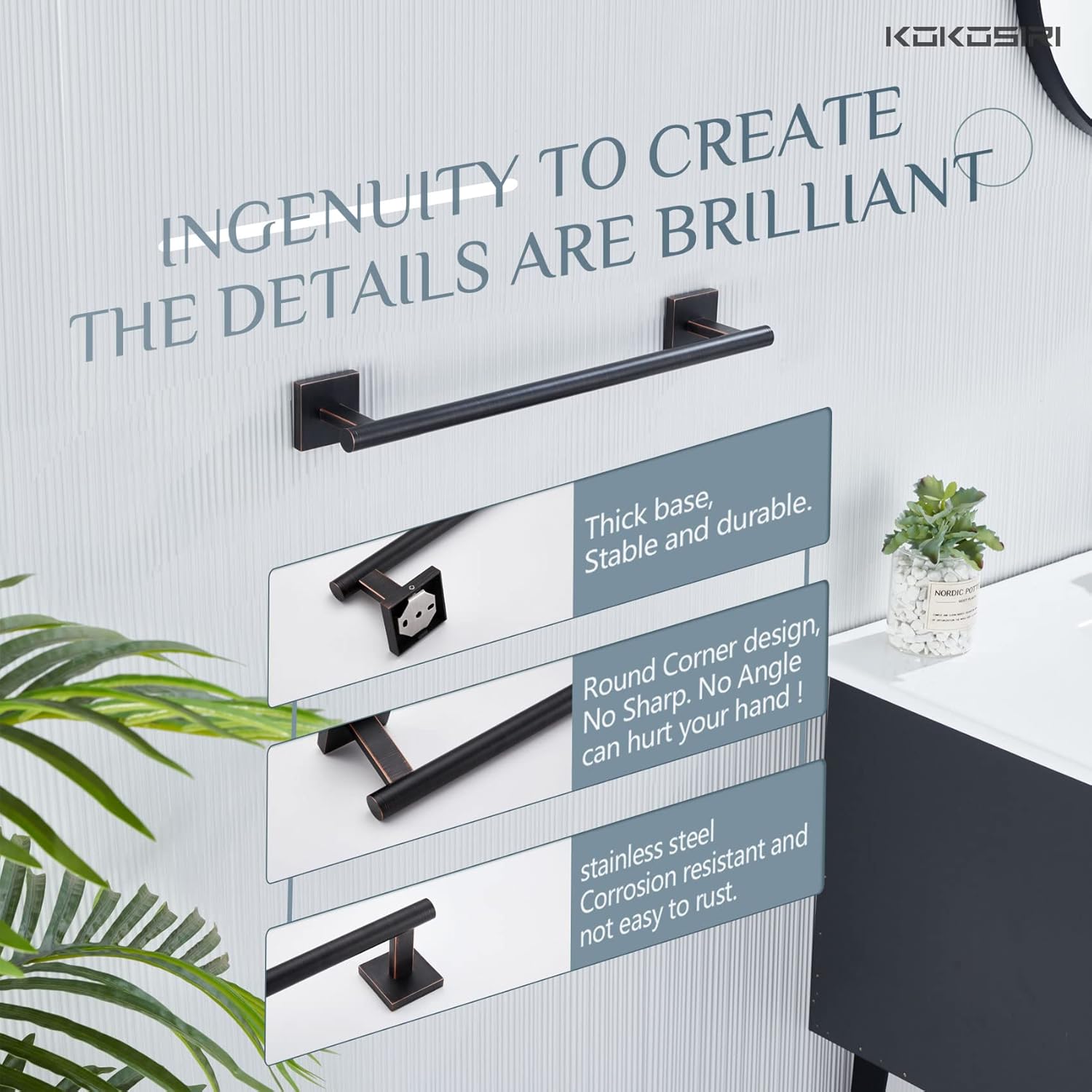 - ◄ Rustproof ► KOKOSIRI towel bar made of SUS 304 Stainless Steel (premium stainless steel). All metal design and used of high-grade steel which can resist rust and corrosion. For your health, all the materials we use are the highest quality and harmless. You can rest assured to use all of our products