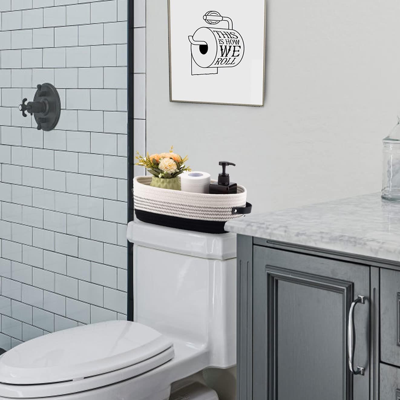 - 🍀Perfectly Size: 13"x5.9"x4".Our cotton rope woven decor basket is perfectly designed to hold multiple rolls of toilet paper, Neutral color design, healthy material and multiuse design, which brings classical decoration for your bathroom
