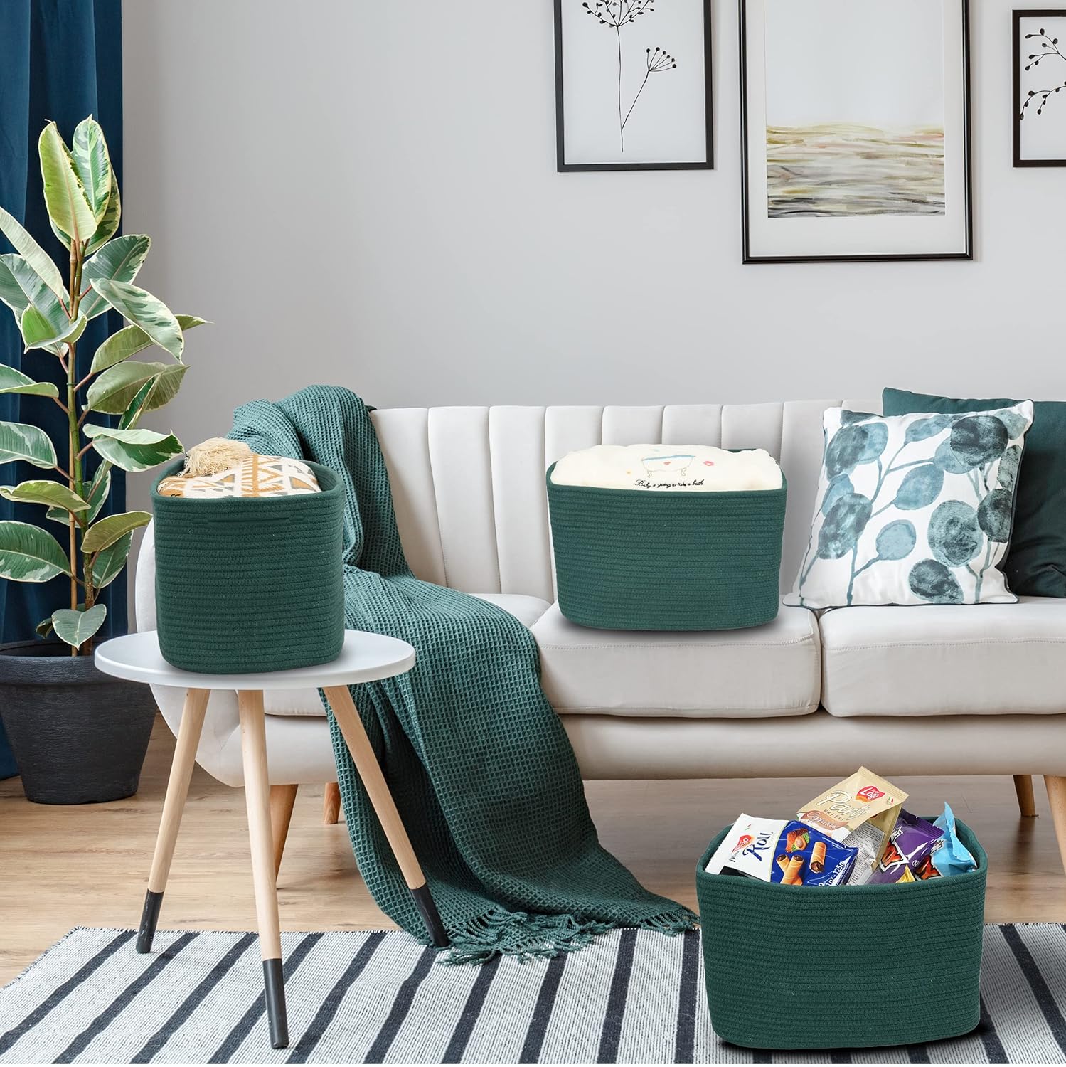 - 3, Designed to complement your room and decor : We special chose classic solid color for those rope basket bins. Our rope basket with the solid colors could use as cloth basket and looks good in any room. Those rope shelf basket looks good in your shelves, closet or next to your bed and is an essential item for your daily storage. This cube rope storage basket enhances any room or décor at your home.