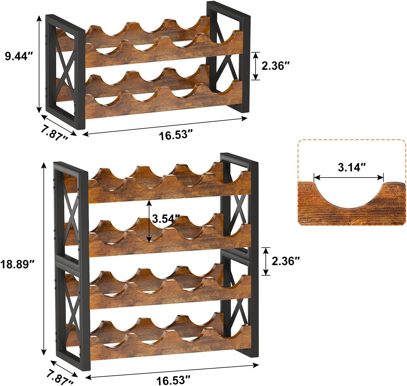- 【Stackable for Customized Storage】 The stackable design of this wine rack allows you to customize your storage space to suit your needs. You can stack multiple units together to create a larger wine storage system or use them individually as standalone wine racks.Suitable for wine bottles within diameter of 4 inch,wider bottles recommended put in the first layer.
