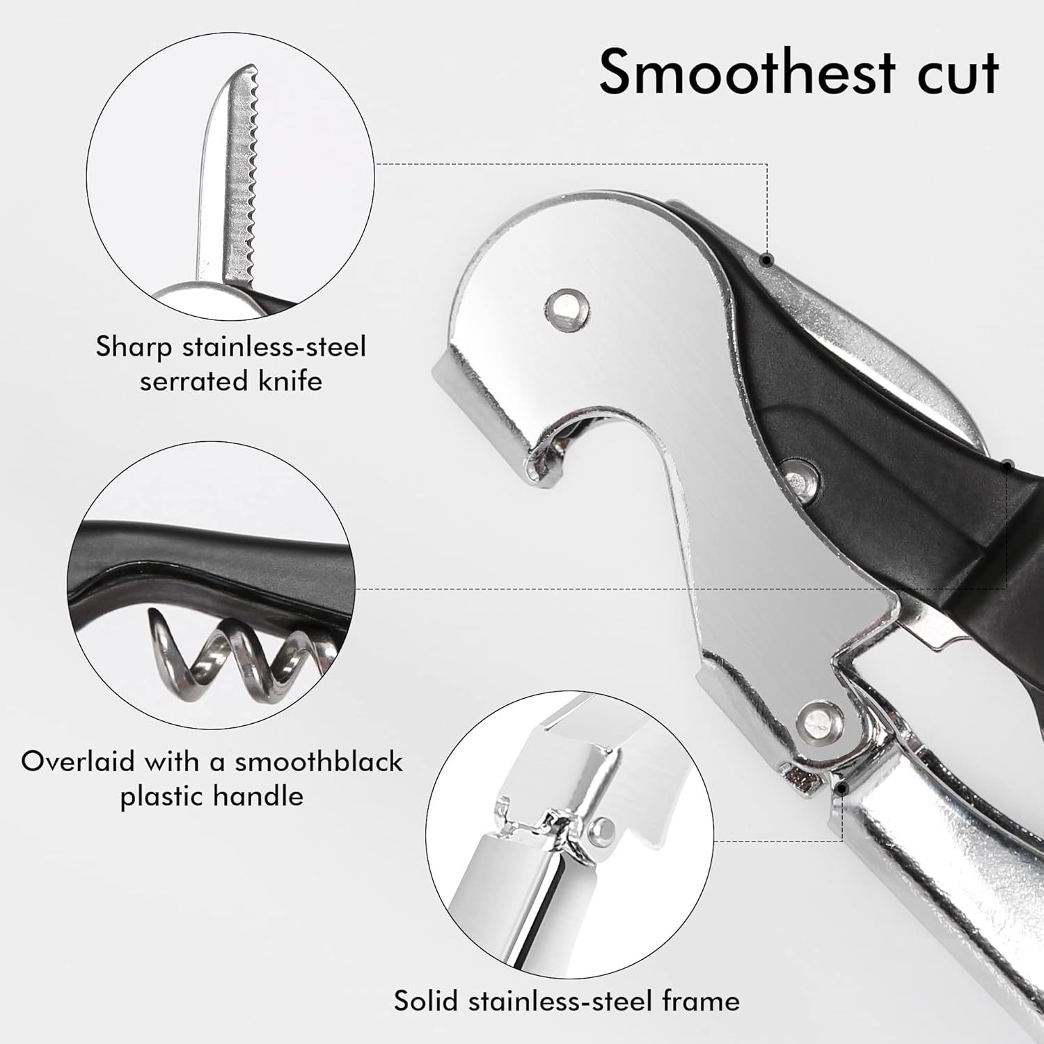 - All-in-one:Features integrated of wine opener,beer opener and foil cutter,multi-functional and professional corkscrew