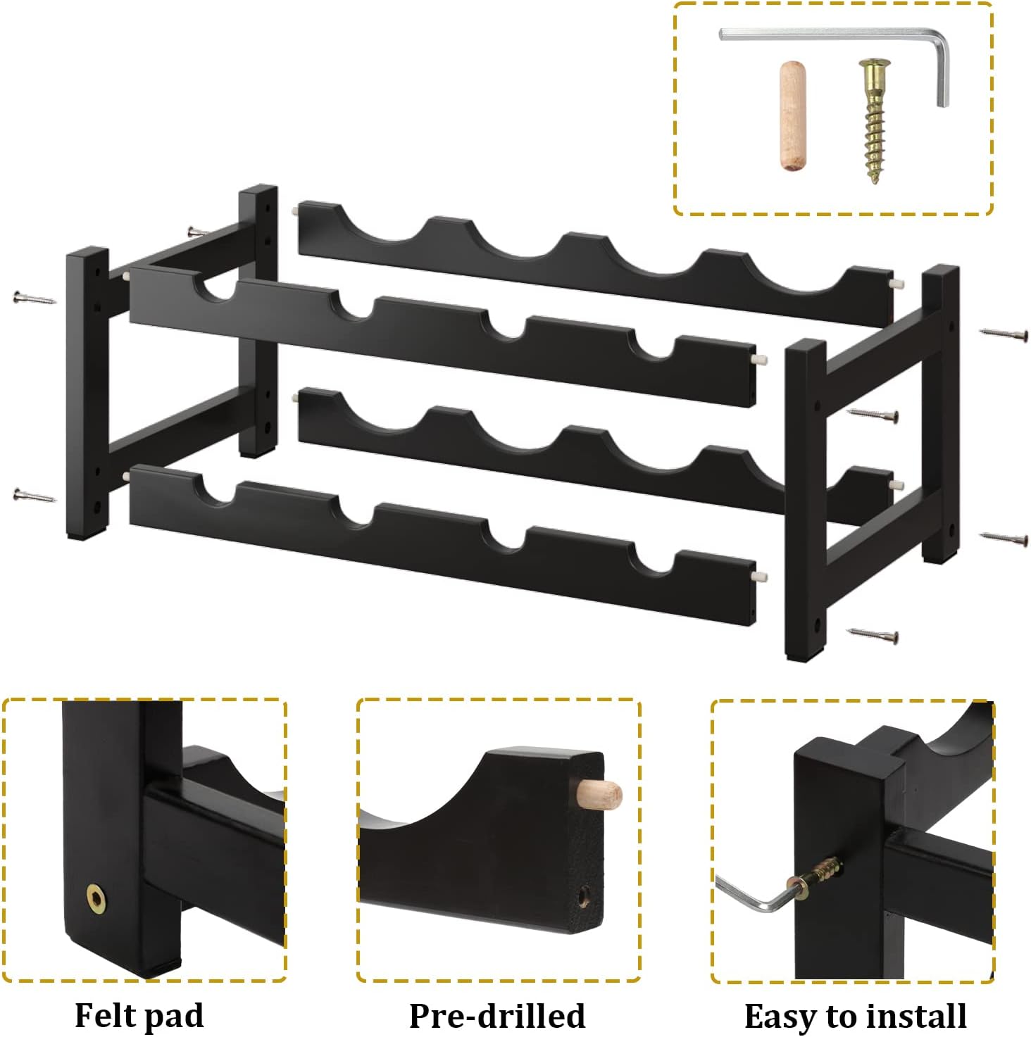 - Easy to Assemble Wine Organizer: Takes only a few minutes to set up small wine racks countertop; Only need to use a hex wrench to gently screw in the screw to complete the installation