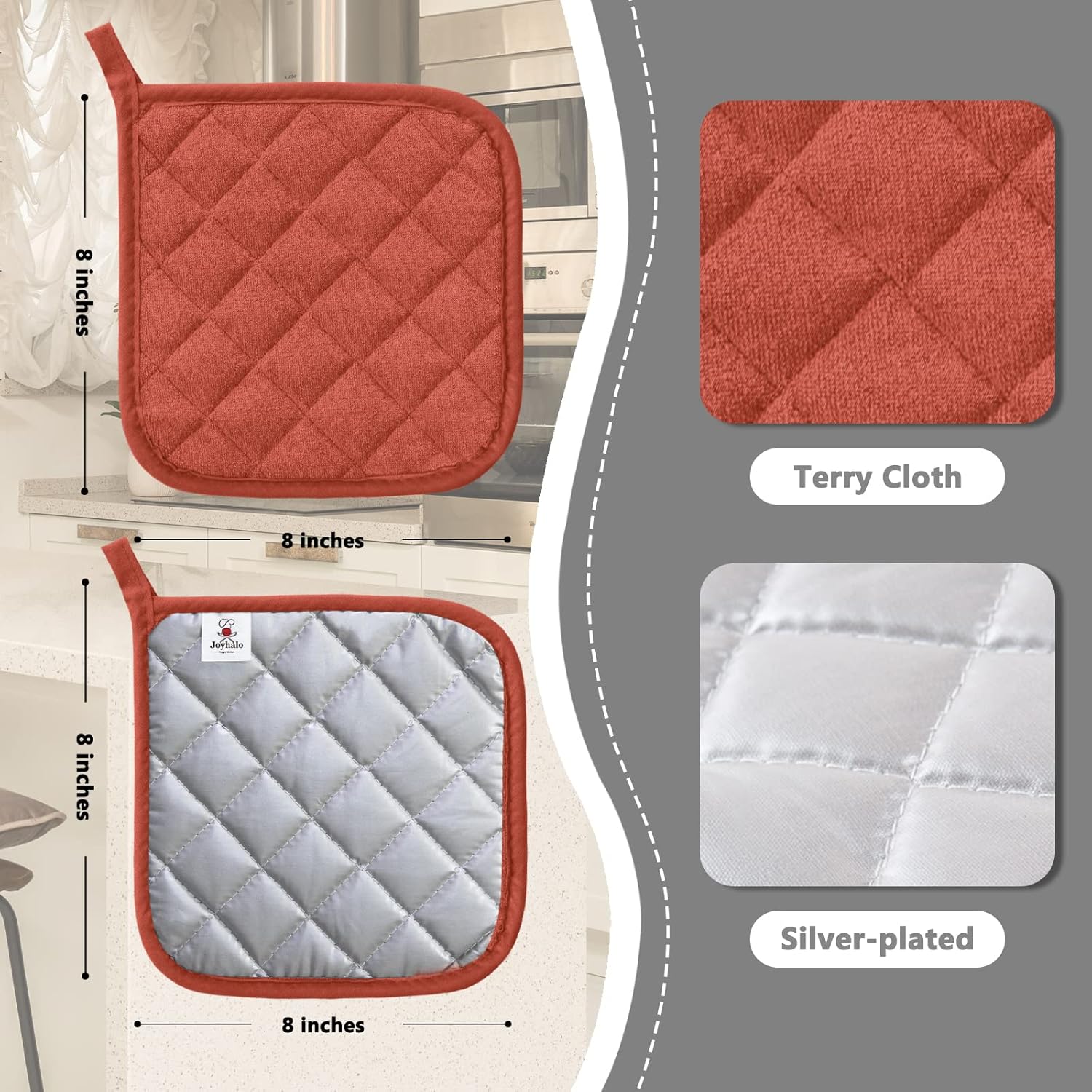 Joyhalo 4 Pack Pot Holders for Kitchen,Cotton Oven Holder with Great Heat Resistance,Non Slip Hot Pads for Kitchen Clearance,Spice