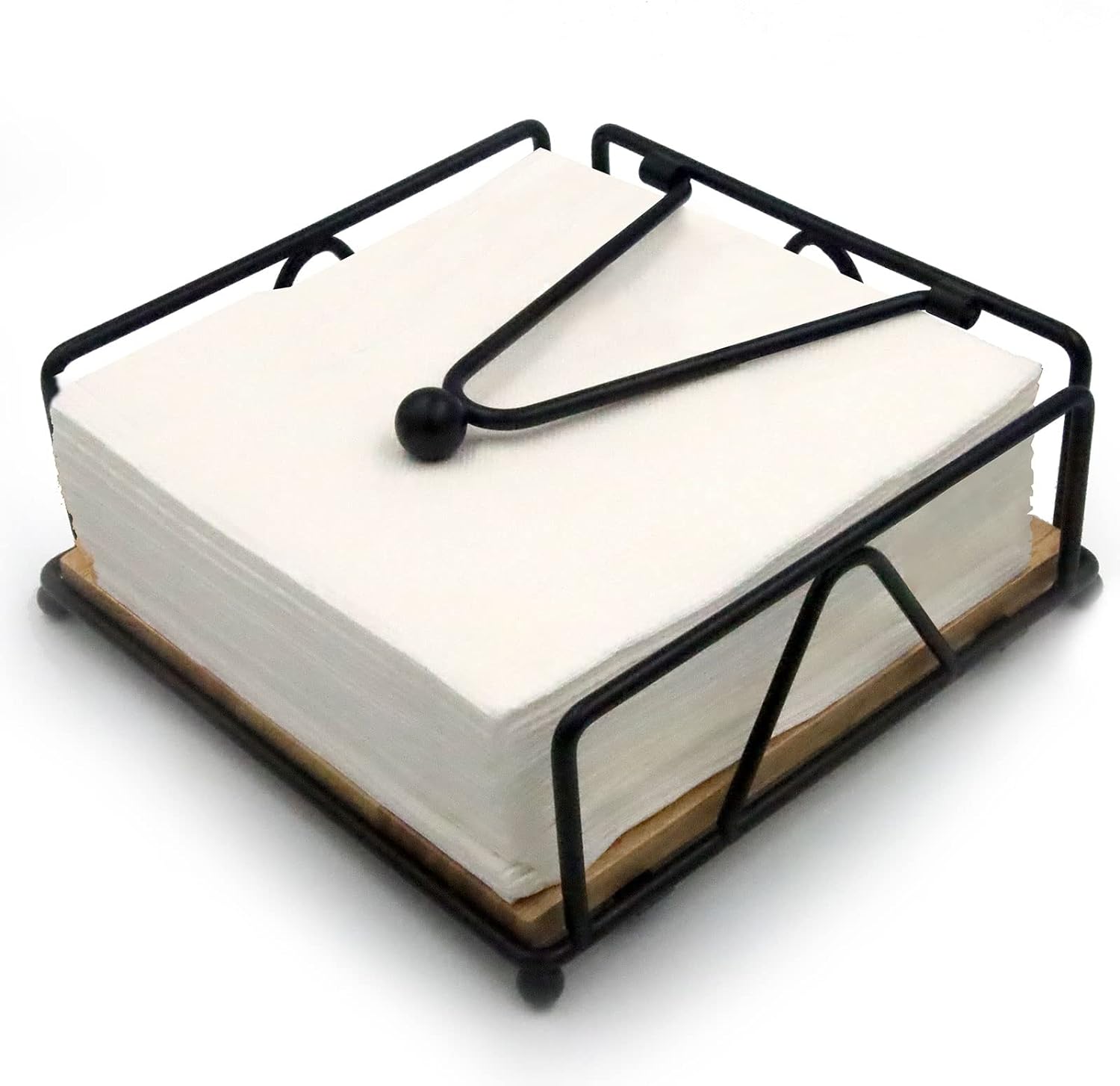 Napkin Holder for Table, Metal and Wood Napkin Holder, Standing Napkin Holders for Paper Napkins, for Kitchen Counter, Dining Table, 7" x 7"(Black)