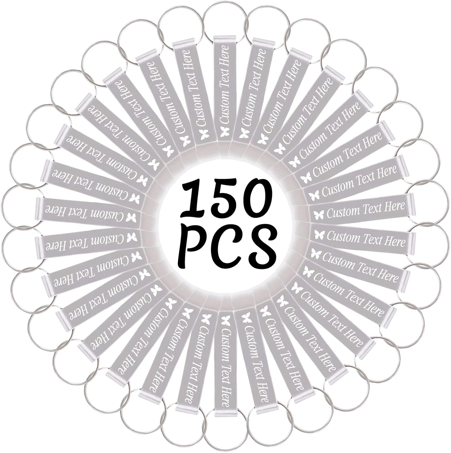 150PCS Personalized Bottle Opener Keychain Bulk Custom Beer Bottle Opener with Logo Text Engraved Wedding Bottle Opener Favors Customized Gifts for Guests Baby Shower Birthday Party-Silver
