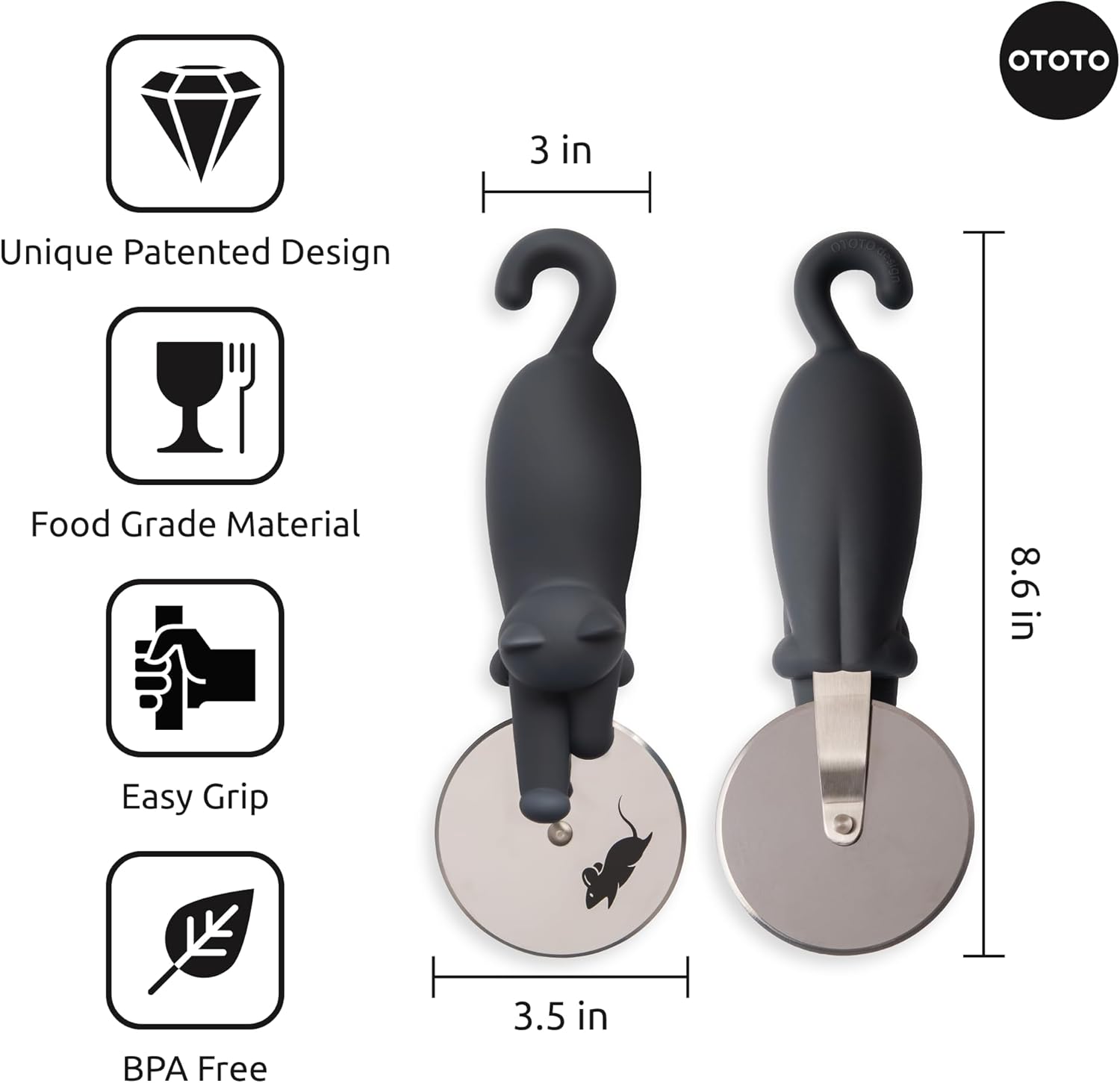 - Meet Kitty Cut, the Pizza Cutter - Designed by award winning OTOTO, Kitty Cut the slicer adds a playful touch to pizza night! This cute kitchen gadget makes slicing pizzas a breeze, so you can enjoy your favorite pie without the fuss.