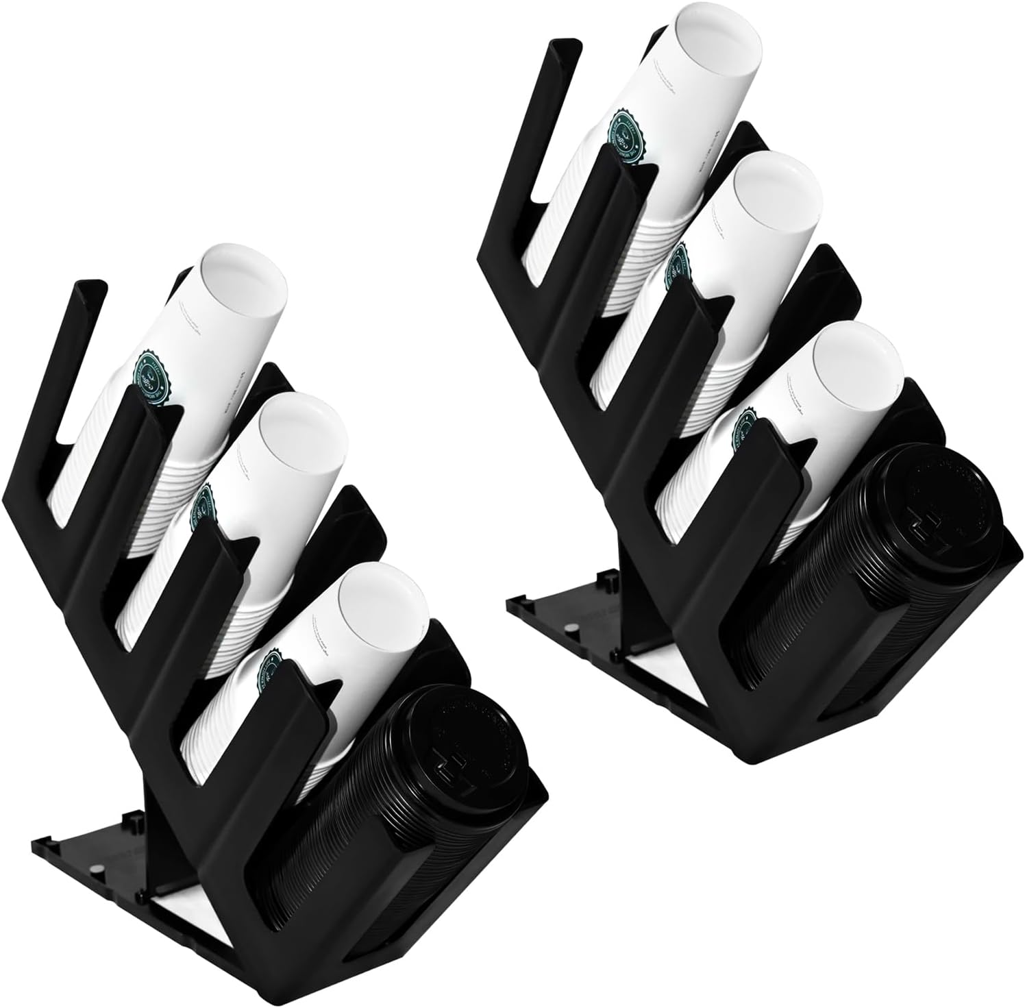 2Pack Paper Cup and Lid Holder,Disposable Coffee Cup Organizer,4 Compartment Disposable Cup Dispenser Organized Storage with Holder for Countertop Coffee Station Bar Kitchen Restaurant Office
