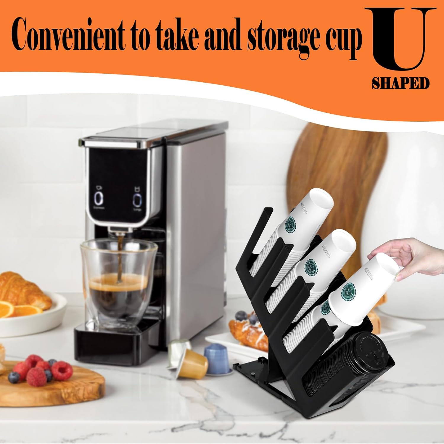 - 【CONVENIENCE】The cup dispenser with U-shaped notch makes it easier to take the cup.This coffee cup organizer is pretty big,dimensions are 17.7''L x 9.4''H x 4.7''W
