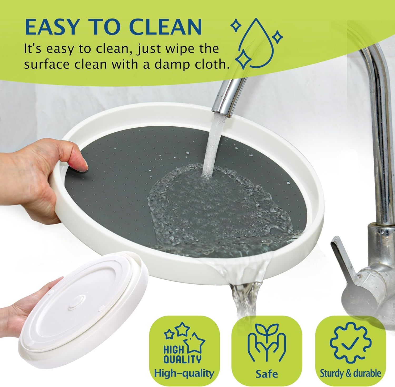 - Non-skid Design: Beaded non-skid surface and 4 silicone anti-slip base feet keeps items in place while rotating lazy susan turntable organization and storage. Never worry about your items falling off.