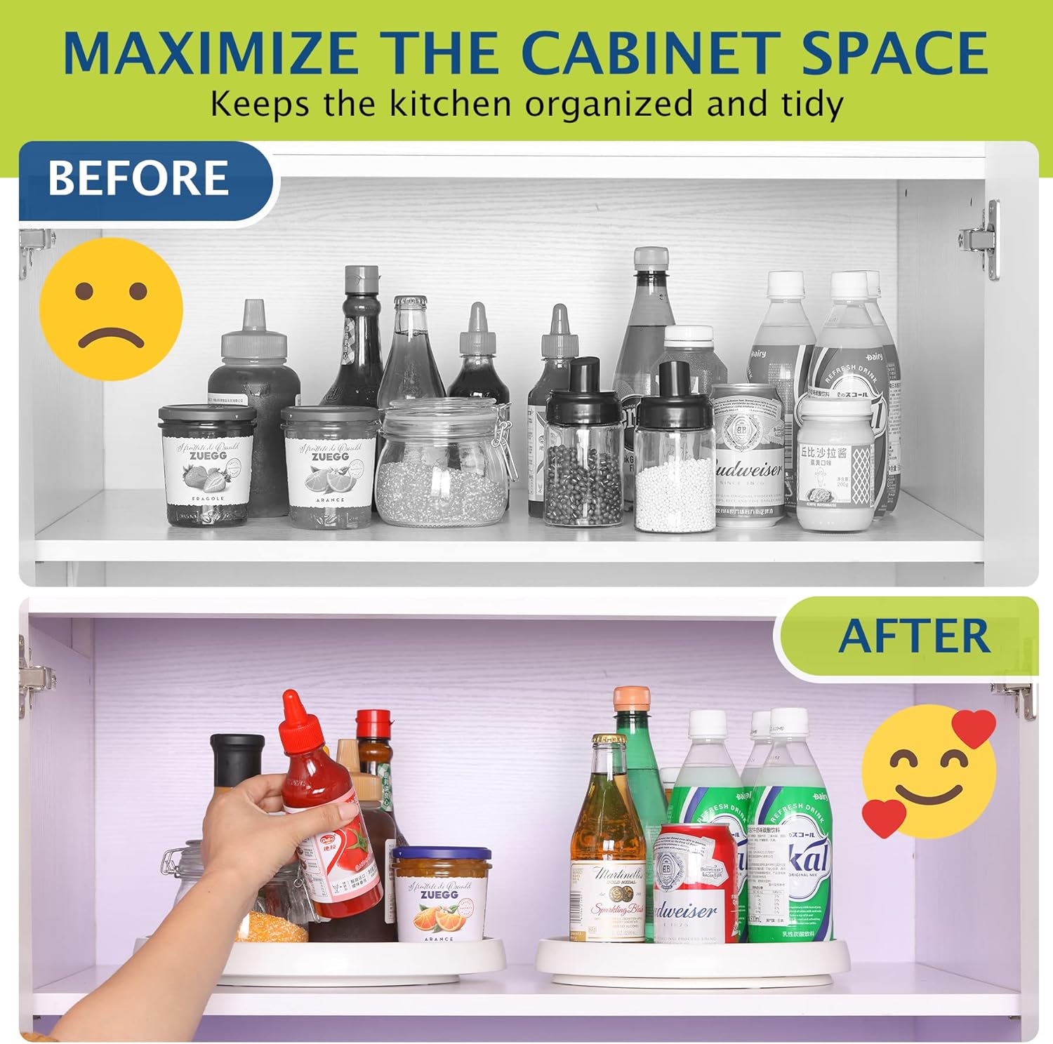 - Non-skid Design: Beaded non-skid surface and 4 silicone anti-slip base feet keeps items in place while rotating lazy susan turntable organization and storage. Never worry about your items falling off.