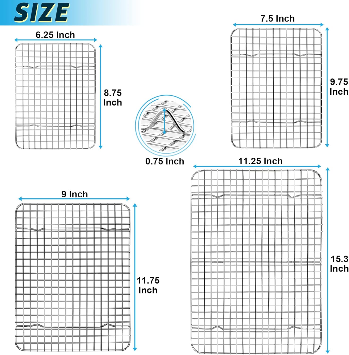 - 4 Sizes & Versatile: 4 sizes, Large: 15.3ββ x 11.25ββ, Medium: 11.75ββ x 9ββ, Small: 9.75ββ x 7.5ββ, Mini: 8.75ββ x 6.25ββ, Perfectly fit various size baking pans, Ideal for baking or cooling cookies, Roasting shrimp, Grilling and Smoking bacons / kabobs, Decorating donuts, Dripping grease, An economical choice for daily use