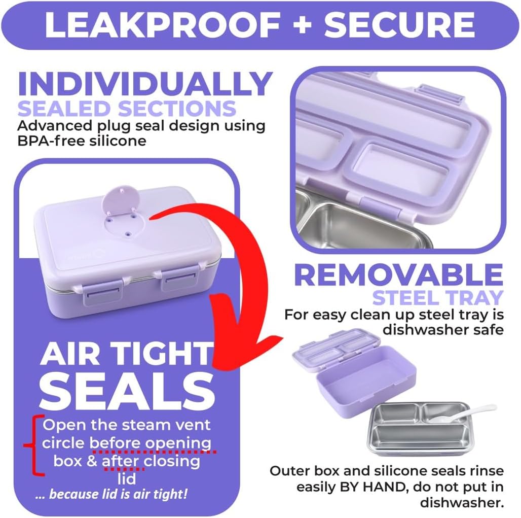 - New Upgraded Features! PREMIUM MINI Steel Bento Box β A fun way to send your toddlers, baby and young PREMIUM MINI Steel Bento Box β A safe, secure way for BABIES and TODDLERS to enjoy lunch at daycare or preschool. This travel-friendly lunchbox features 3 stainless steel section compartments sealed individually with high-grade silicone seals to keep food fresh. Includes spork. BPA and phthalate free. AGE 3+