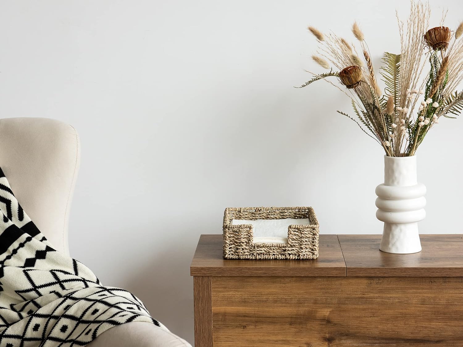 StorageWorks Seagrass Napkin Holder for Table, Wicker Napkin Baskets for Bathroom, Rustic Napkin Dispenser for Dinning Room, Guset Room, 7 ½"L x 7 ½"W x 2 ¾"H, 1 Pack