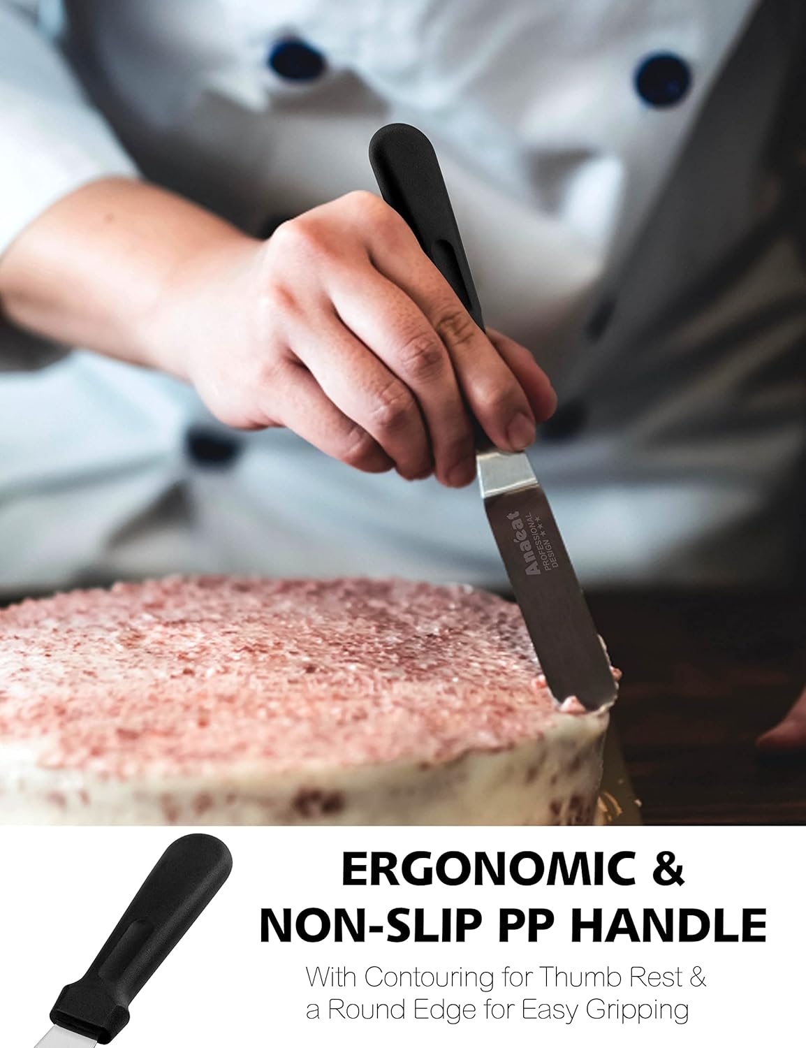 - PERFECT BALANCE BETWEEN STIFFNESS & FLEXIBILITY - Anaeat Spatula gives you more control when icing your cake. The Professional Angled cake spatula is good to move easier when frosting cake. Great for frosting and smoothing icing on cakes to keep your hands and finger away from the icing.