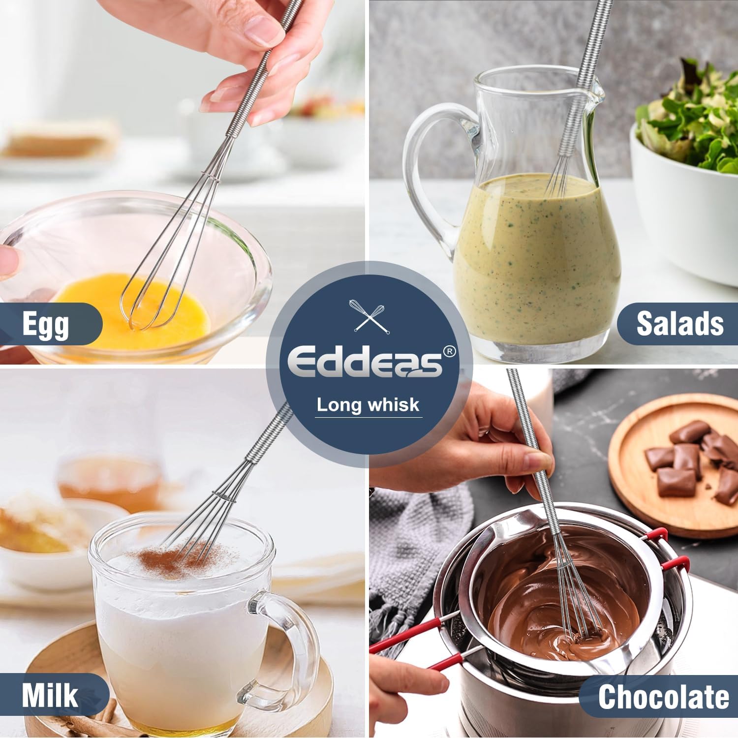 - SUPER PERFORMANCE AND MULTIPURPOSE - Eddeas Long small whisk can withstand temperatures up to 450β.Eddeas small whisk provides you with powerful whipping and aeration.