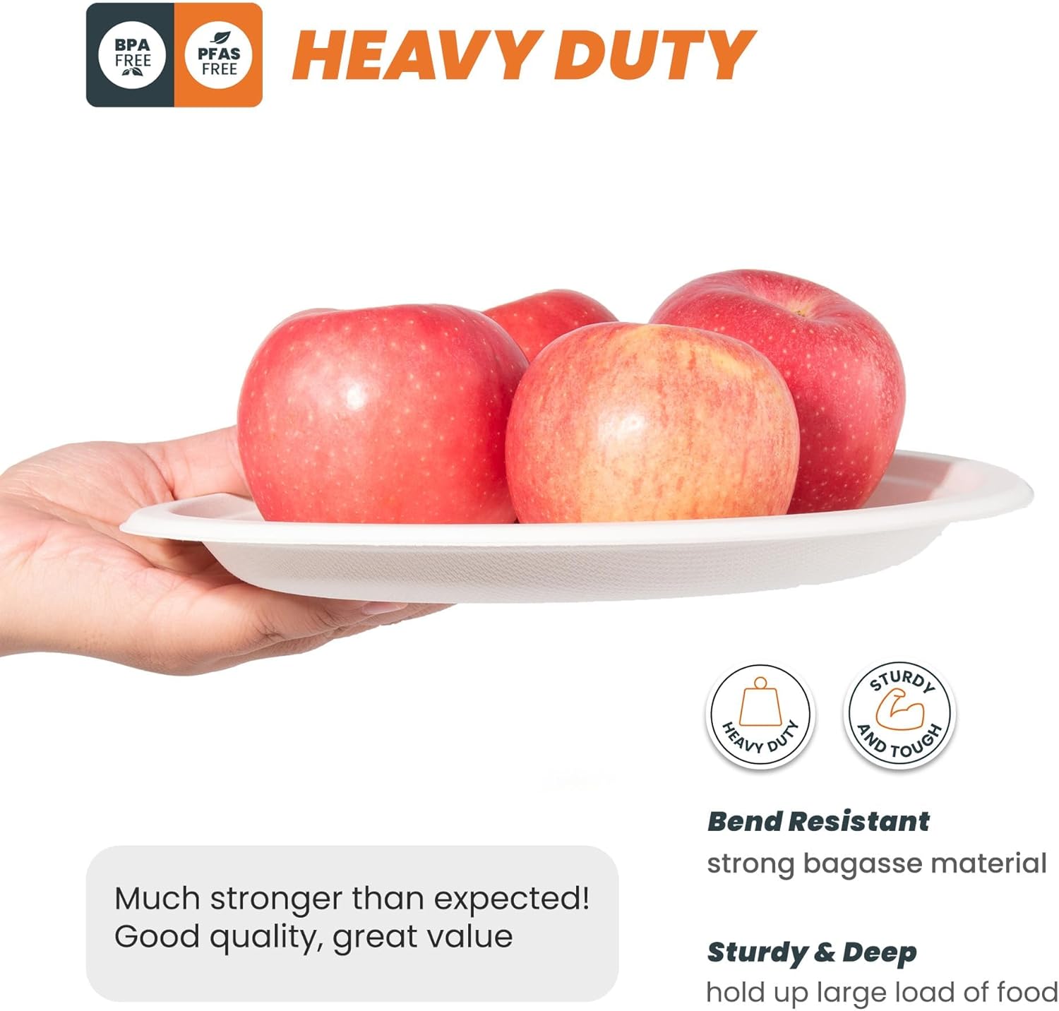 100% Compostable Plates - 125-Count Heavy Duty Disposable 10-Inch Plates Made of Bagasse - Eco-Friendly and Sustainable