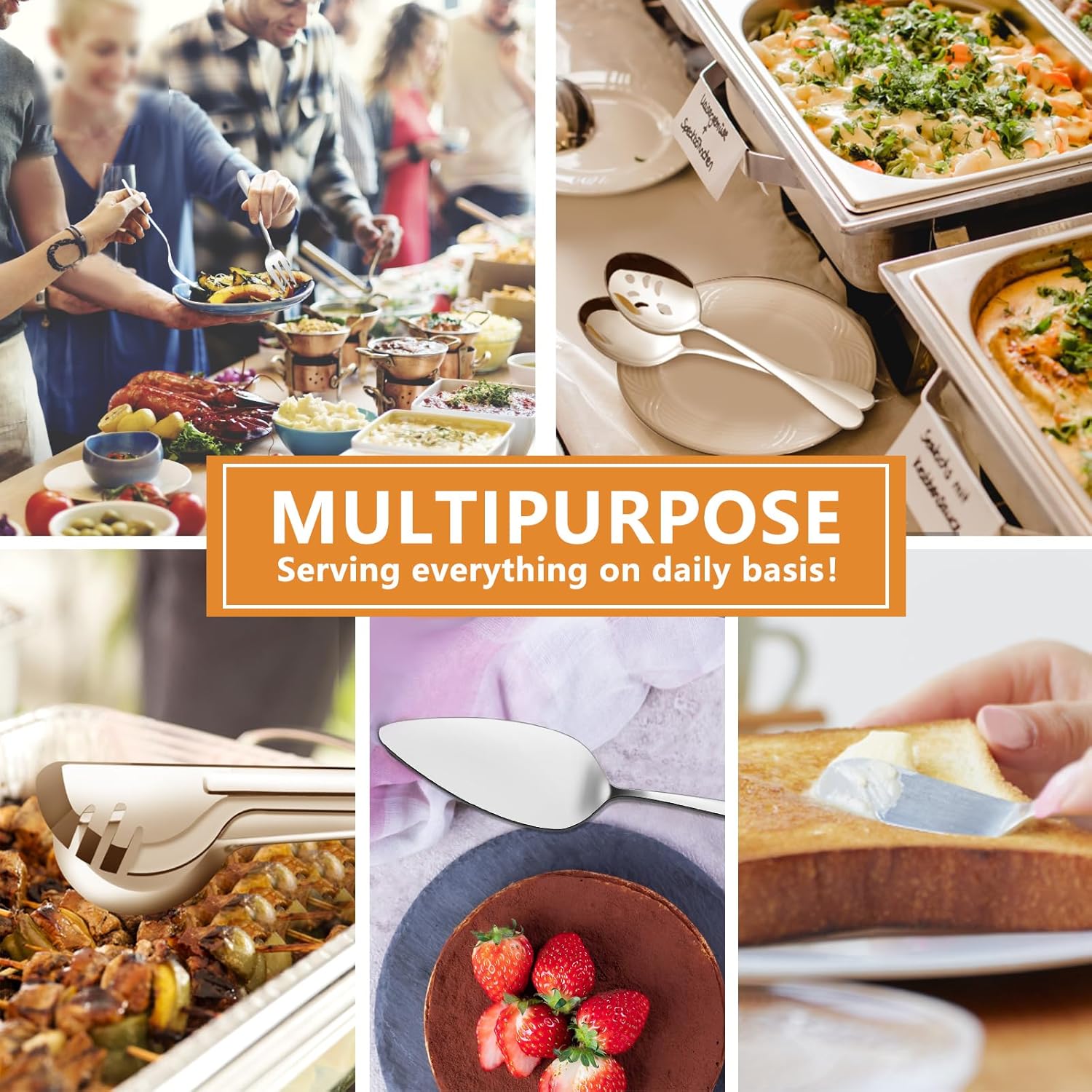 - 【Nice Buffet Serving Set】These metal serving utensils will be very suitable for serving food, distributing solid food, picking up food, filtering food, spreading butter and jam. The classic and elegant design makes this serving utensil set perfect for most dining occasions, providing you with a cozy and enjoyable dining atmosphere