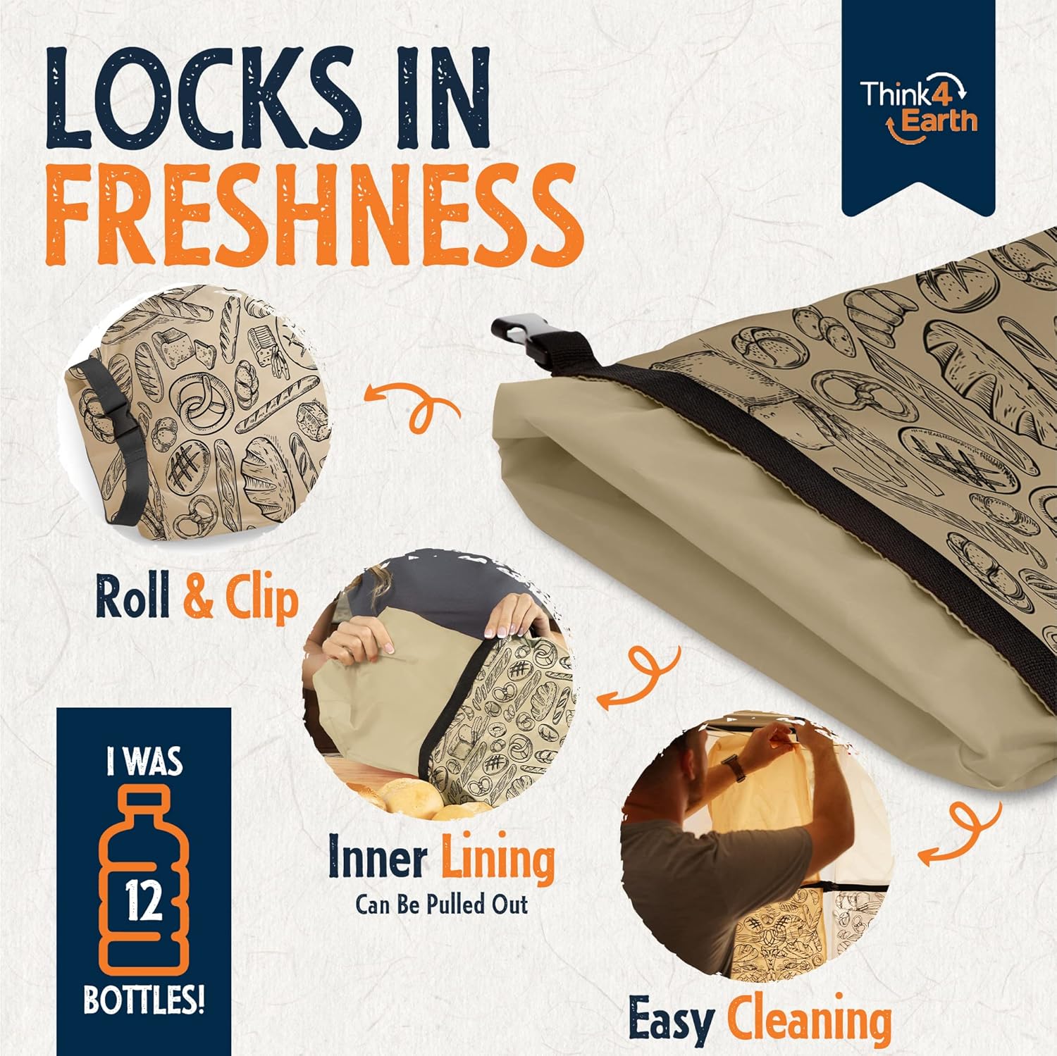 - ECO-FRIENDLY & REUSABLE BREAD BAGS: Opt for our reusable bread bags made from recycled plastic bottles as a planet-conscious alternative to disposable plastics. Contribute to a greener future while keeping your homemade or professional bakery products fresh with Think4Earth's sustainable food storage solutions. Crafted from 12 BPA-free, food-safe recycled plastic bottles, these vegan-friendly, 100% recyclable bags make a positive impact.