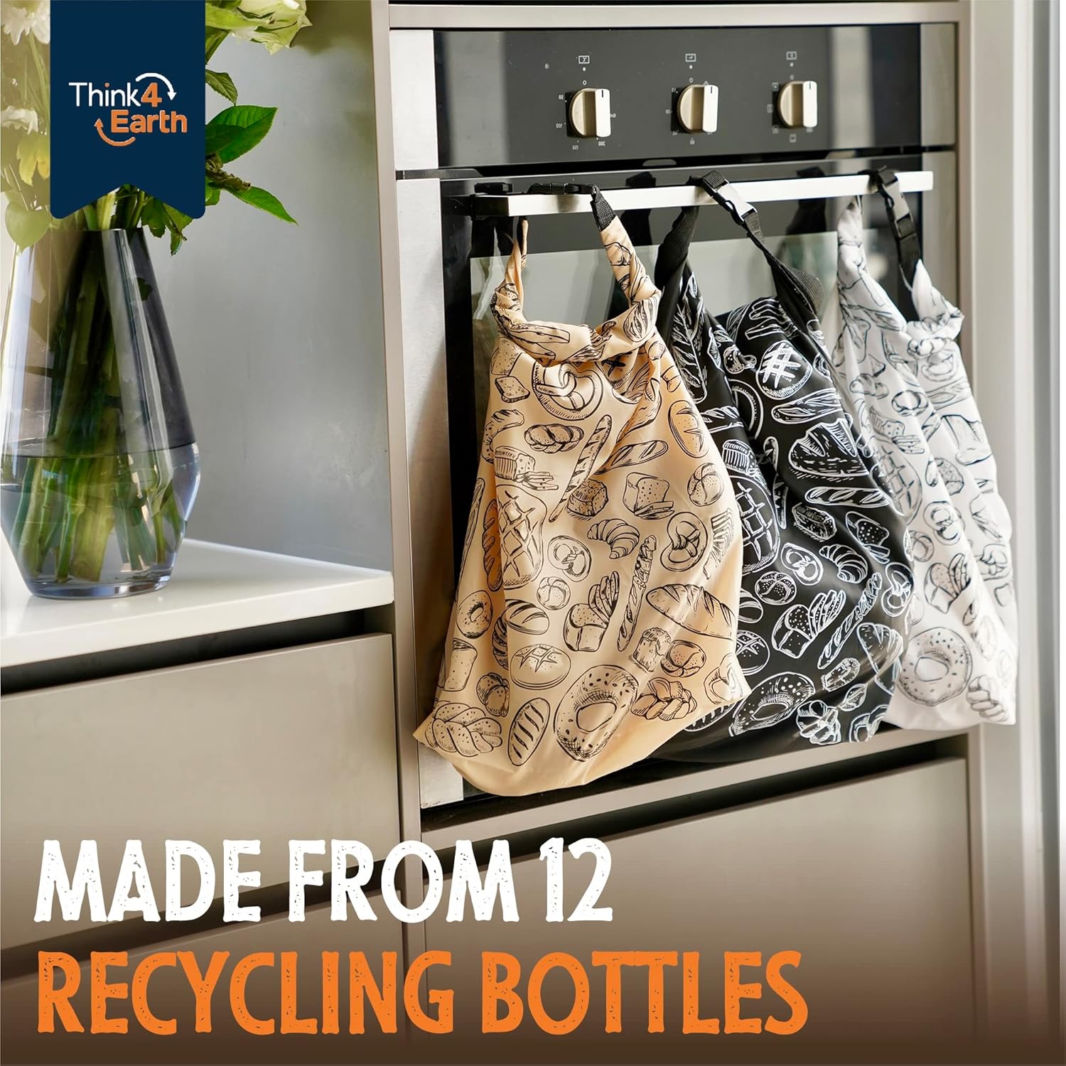 - ECO-FRIENDLY & REUSABLE BREAD BAGS: Opt for our reusable bread bags made from recycled plastic bottles as a planet-conscious alternative to disposable plastics. Contribute to a greener future while keeping your homemade or professional bakery products fresh with Think4Earth's sustainable food storage solutions. Crafted from 12 BPA-free, food-safe recycled plastic bottles, these vegan-friendly, 100% recyclable bags make a positive impact.